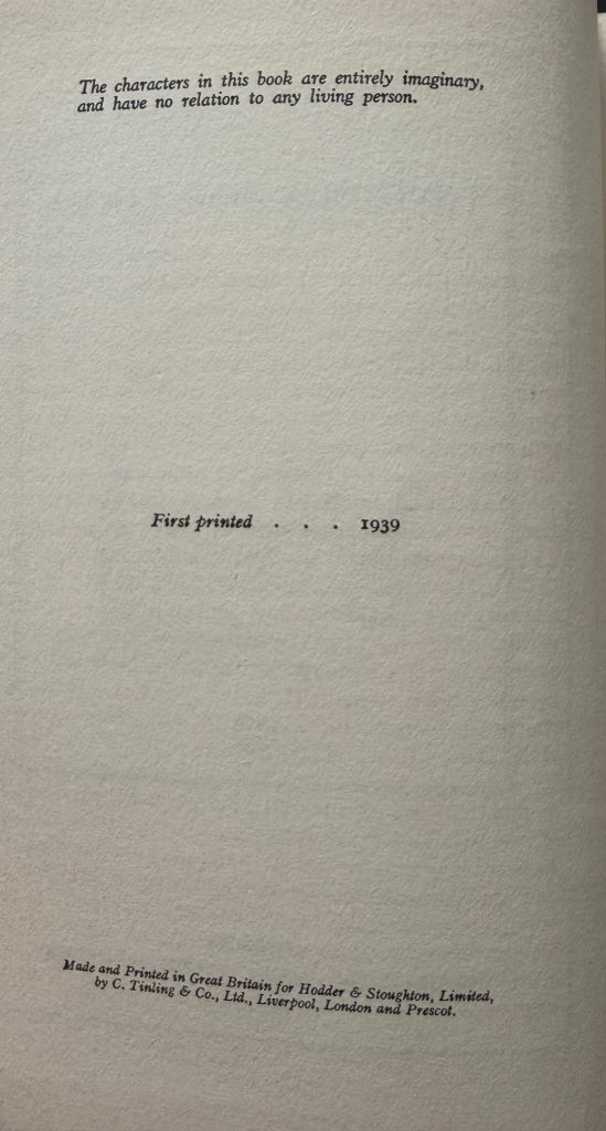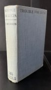 The First UK printing published by Hodder & Stoughton, London in 1939. The BOOK is in Very Good++ condition. Light ghosting to the spine and a little pushing to the corners and spine ends. Blue end-papers as issued. Neat previous owner's name to front pastedown and above this is a small tipped in birthday handwritten presentation label. The WRAPPER is complete and is in Very Good+ condition. Some light edge-wear with small closed tears, nicks and some rubbing. Toning to the spine and edges. Some loss to the upper spine just encroaching on the word 'Trouble' in the titling. The wrapper remains striking in the removable Brodart archival cover. The sixth and final title in the iconic ‘Mapp and Lucia’ series. Extremely scarce with the wrapper.