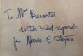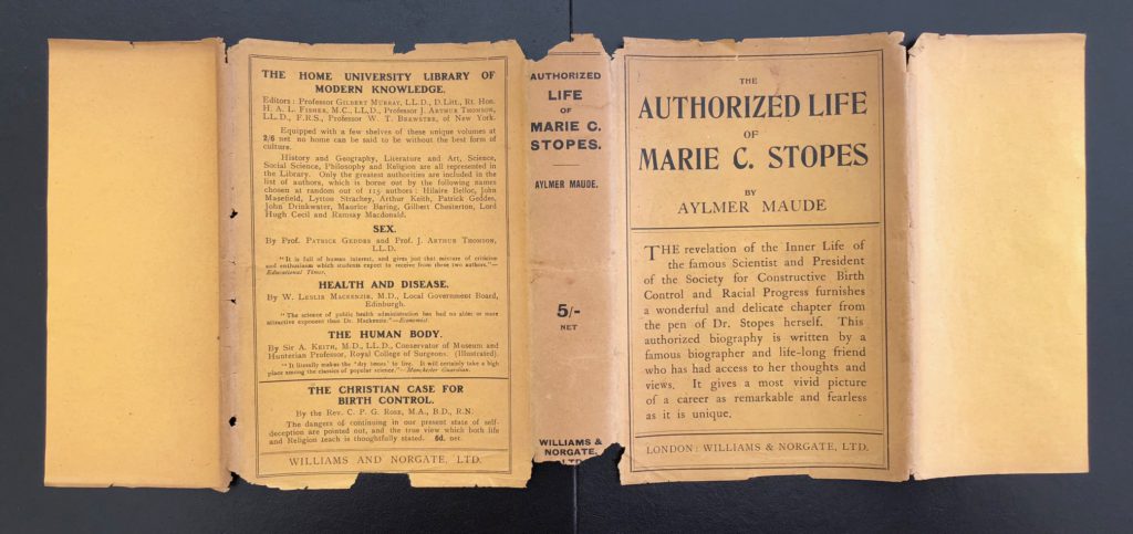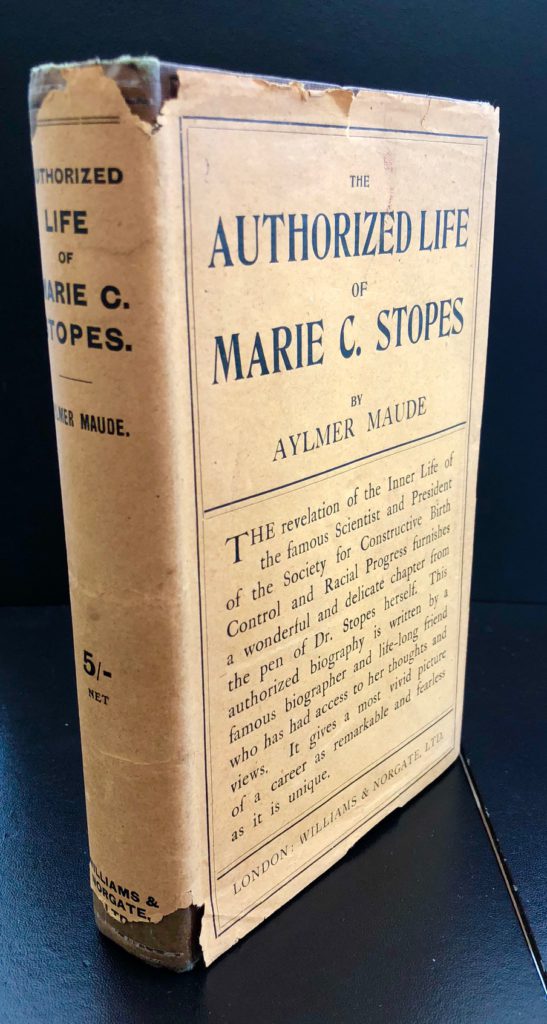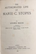 The First UK printing published by Williams & Norgate, Ltd., London in 1924. The BOOK is in Very Good+ condition. Mild pushing and rubbing to the spine ends and edges. The gilt titling to the spine and front cover is dulled. Some light toning and spotting to the text-block, prelims and page edges. Some offsetting to the end papers. The binding remains tight. Appendix C : 'The tenets of the C.B.C.' (pp. 221–6) has been neatly removed at the gutter. The fragile paper WRAPPER is complete and is in Very Good condition. Some loss at the spine ends and edges - see images. A hint of toning to the spine. A few small closed tears at the upper spine end folds. The wrapper is protected in a removable Brodart archival cover. The book has been inscribed and signed by Marie Stopes to the front blank end paper: 'To Mrs Brewster, with kind regards, from Marie C. Stopes'. Dr Marie Stopes (1880–1958), though best known today for her contributions to palaeontology, her pioneering work on birth control, and her manual 'Married Love', was also a prolific writer of novels, poems and fairy stories. Aylmer Maude was a famous biographer and life-long friend of Stopes. A very scarce title and at the time of listing the only available copy on the market.