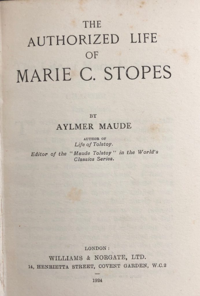 Aylmer, Maude ~ The Authorized Life Of Marie C. Stopes : Inscribed And Signed By Marie Stopes