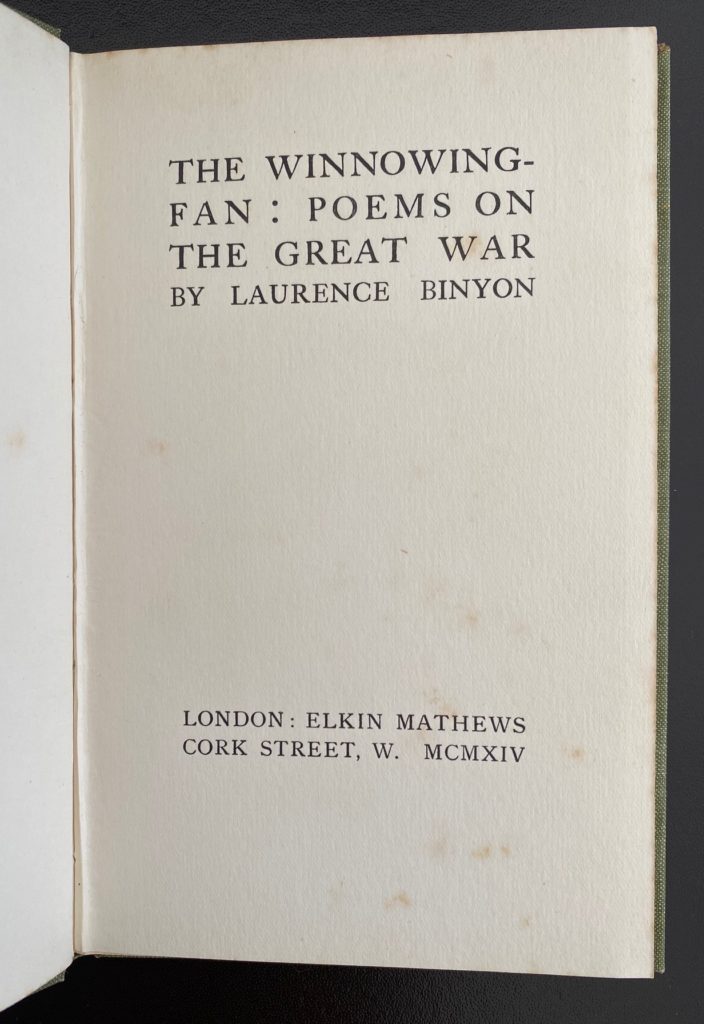 Binyon, Laurence ~ The Winnowing Fan – Poems On The Great War : With The Scarce Wrapper