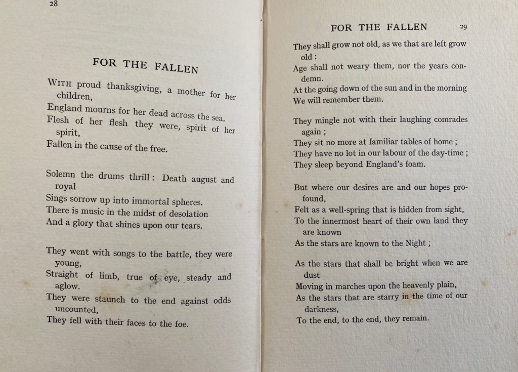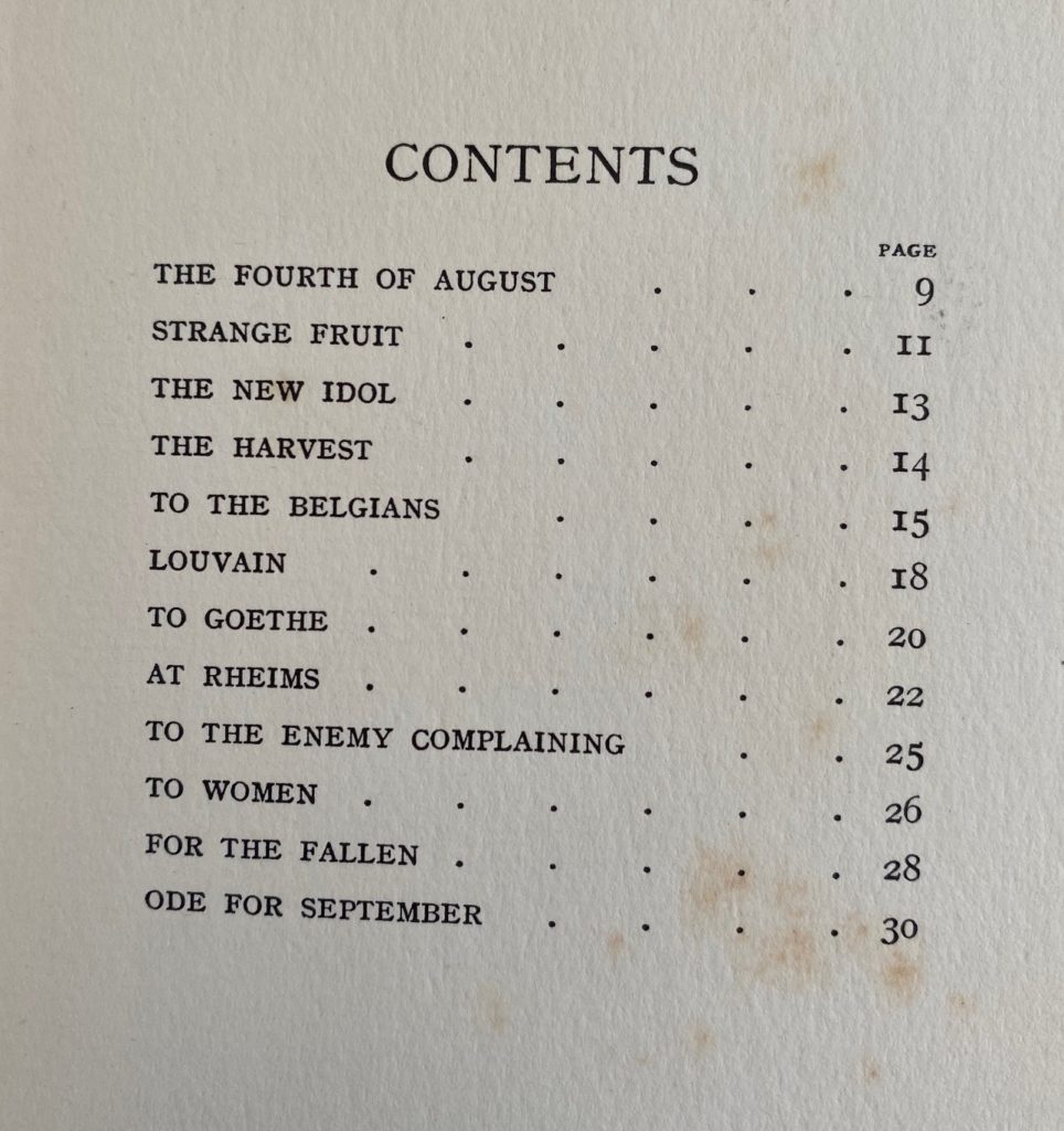 Binyon's first collection of war poems, and includes the first book appearance of 'For the Fallen'
