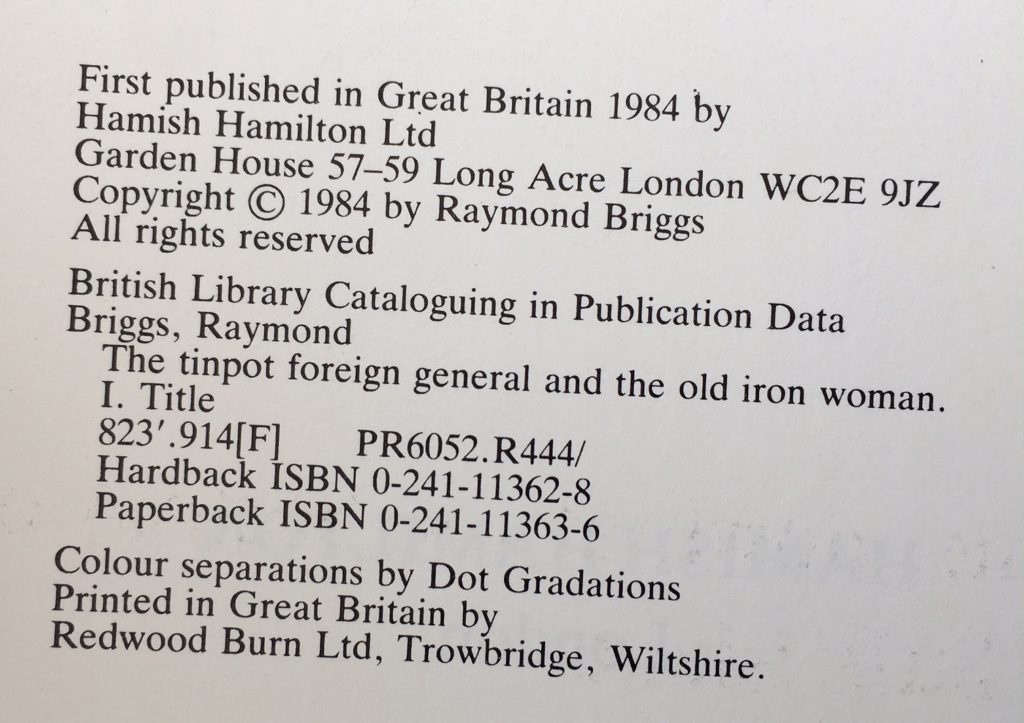 Briggs, Raymond ~ The Tin-Pot Foreign General And The Old Iron Woman : With A Tipped-In Compliments Slip Signed And Dated By The Author