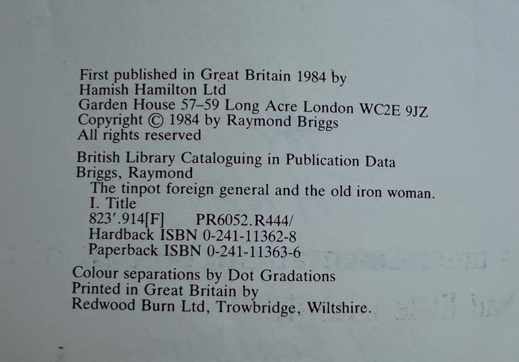 Briggs, Raymond ~ The Tin-Pot Foreign General And The Old Iron Woman : Signed By The Author