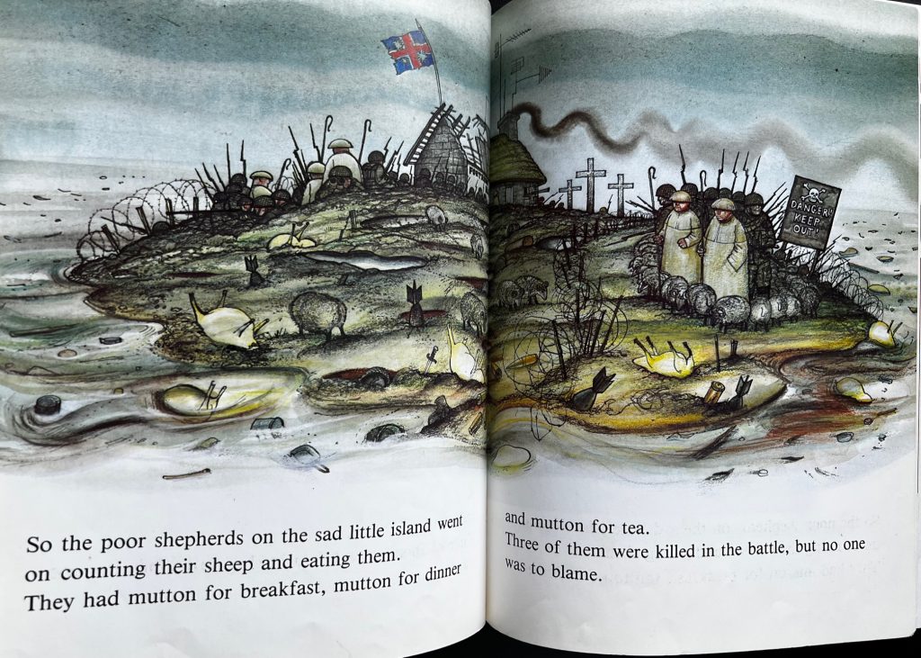 The First UK Printing published by Hamish Hamilton in 1984. The wraps format with laminated coloured covers. Issued simultaneously with the scarcer hardback format. The BOOK is in near Fine condition. Free from inscriptions and erasures. Some very light bumping at the spine ends and corners. Light creasing to rear cover edges and rear lower corner. Light toning to the extreme page edges. Inscribed by the author to the title page : 'For Jane, with best wishes, Raymond Briggs , 1985'. Profusely illustrated in colour throughout by the author. Briggs satirises the conflict that was the Falklands war while capturing the devastation war brings to those caught up in it. Collectible