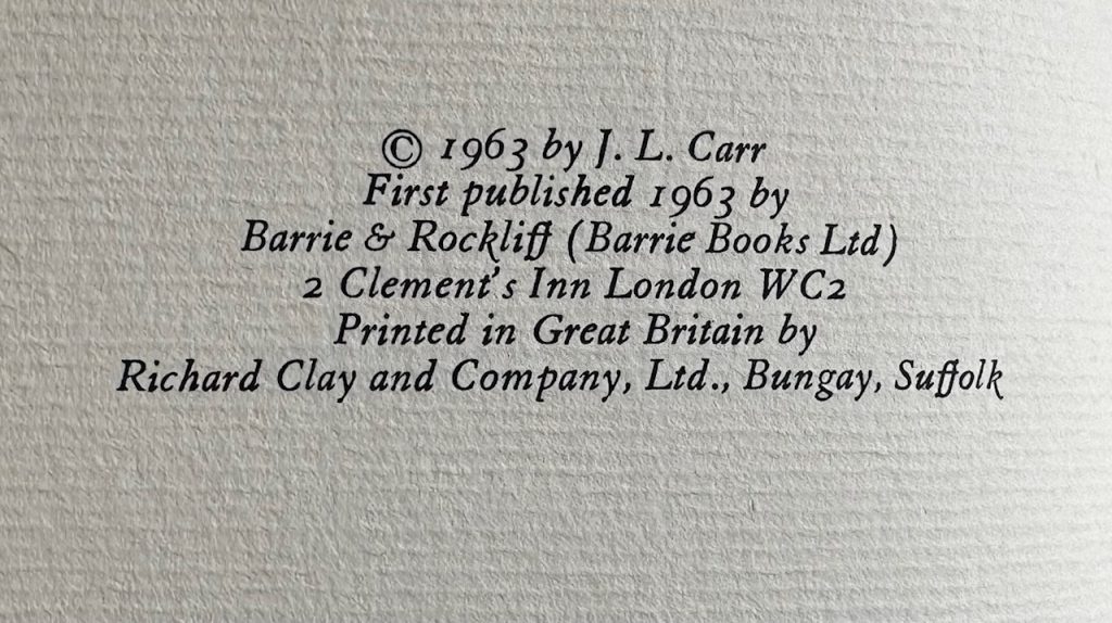 First UK Printing : Barrie & Rockliff, London : 1963