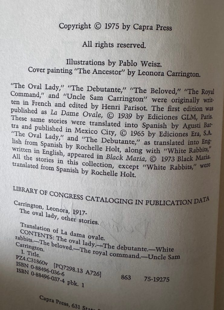 Carrington, Leonora & Weisz, Pablo [Illus.]; Holt, Rochelle [Trans.]; ~ The Oval Lady : Six Surreal Stories