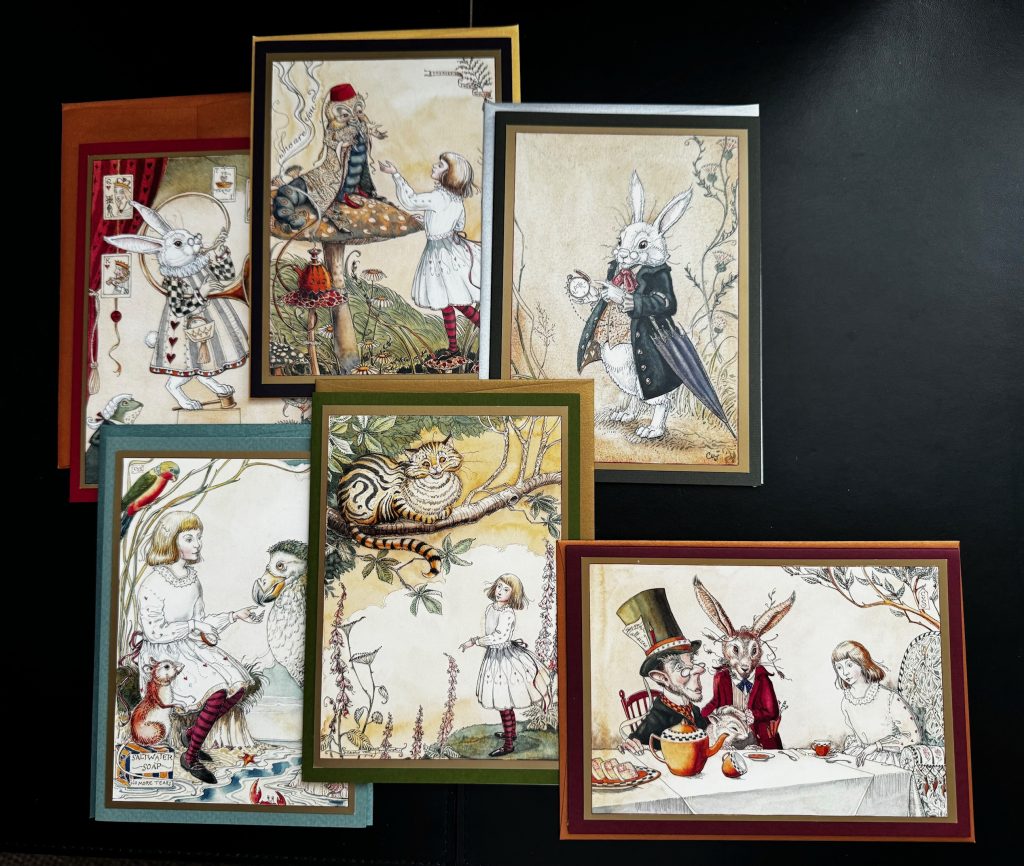 Carroll, Lewis & Van Sandwyk, Charles (Illus.) ~ Alice’s Adventures in Wonderland : Signed by The Illustrator : With A Complete Set Of Six Limited Greeting Cards With Their Original Envelopes. Each Card Is Signed By The Illustrator