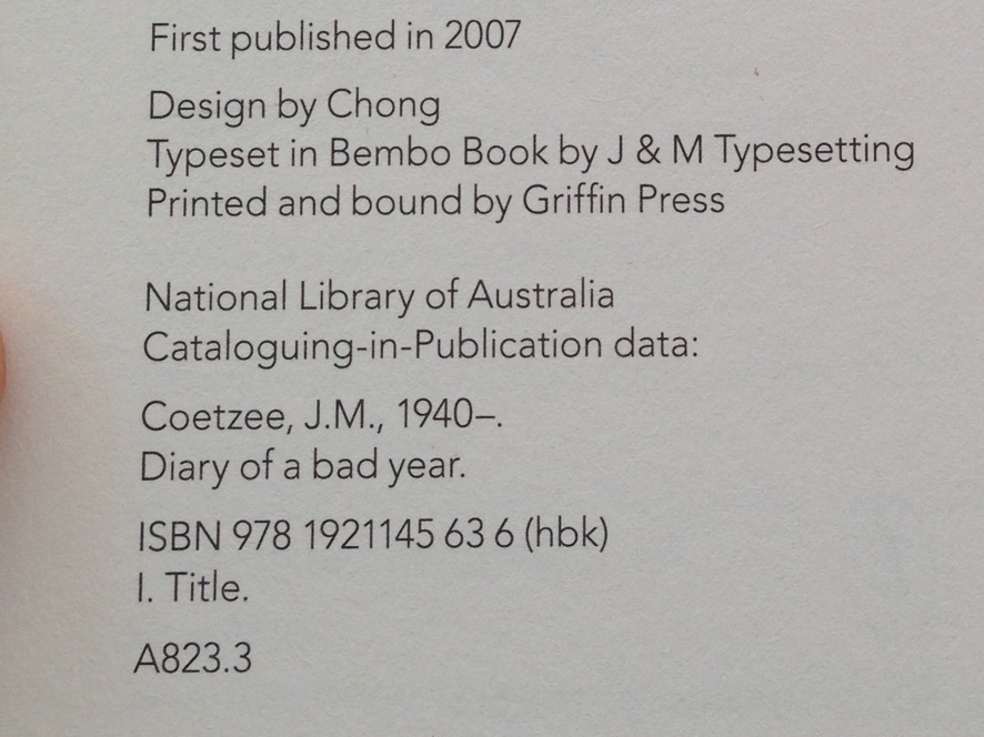 Coetzee J. M. ~ Diary Of A Bad Year : Signed By The Author