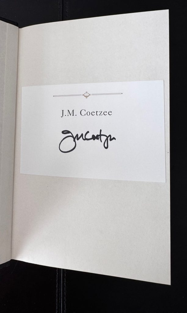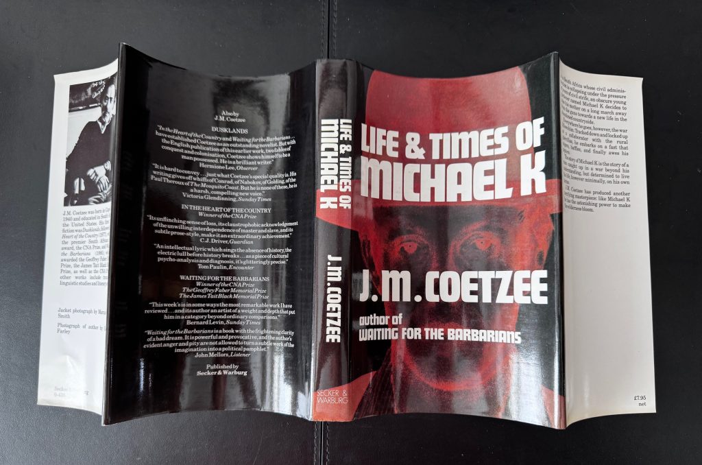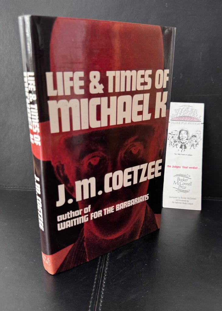 The First UK printing (printed and bound by Biddles, UK) published by Secker & Warburg, London in 1983. black publisher's boards, lined and lettered in gilt to spine; together in the wrapper, which features a photograph by Marcus Wilson-Smith, and a black and white photograph of the author by Geraldine Farley to the lower flap; The BOOK is in near fine condition, just a touch bruised to the spine tips; ; The WRAPPER with a hint of toning, else also fine. The wrapper is protected in a removable Brodart archival cover. Preceded only by the edition published by the Ravan Press, Johannesburg (This Ravan Press edition had also been printed and bound by the same UK printers 'Biddles' earlier in 1983). This copy double signed (without dedication) by the Nobel Laureate author, both to a tipped-in bookplate, and directly to the title page. This signed bookplate was provided by The Oak Tree Fine Press. 'J M Coetzee was instrumental in establishing Oak Tree Fine Press and has generously signed many books to assist our efforts. The provenance of the signature is thus guaranteed' (Oak Tree Fine Press). A scarce Booker McConnell Prize shortlist Bookmark is also loosely inserted. This title won author J. M. Coetzee his first Booker Prize. This powerful novel is based around the titular protagonist who makes a difficult journey through war-torn South Africa with his mother, to a better life in the countryside. Set during apartheid in the 1970s/80s, the harrowing tale follows the arduous trek and the various hardships that Michael K suffers along the way, including imprisonment, bereavement, starvation, and displacement, and some critics have drawn comparisons between Michael and Josef K. in Kafka's 'The Trial', who both depict characters put in unexpected positions of great hardship. As one 'New York Times' reviewer wrote upon the book's publication, "One comes away feeling that one's eye has been sharpened, one's hearing vivified, not only for the bright proliferations of nature, but for human unexpectedness." In 2023 'Life and Times of Michael K' was adapted into a well-reviewed play by Lara Foot, in which the characters were depicted as puppets, created and designed by Adrian Kohler. In 1999 Coetzee was awarded the prize a second time with 'Disgrace', making him the first author to have won the prize twice. "He thought of himself not as something heavy that left tracks behind it, but if anything, as a speck upon the surface of an earth too deeply asleep to notice the scratch of ant feet, the rasp of butterfly teeth, the tumbling of dust.” Scarce with these attributes.