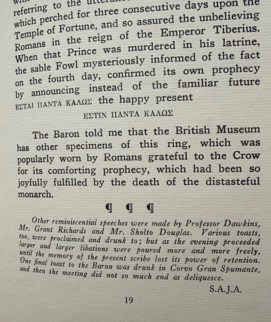 (Corvo, Fr Rolfe, Baron) : A True Recital of the Procedure of the First Banquet held by the Corvine Society at the Ambassador Club