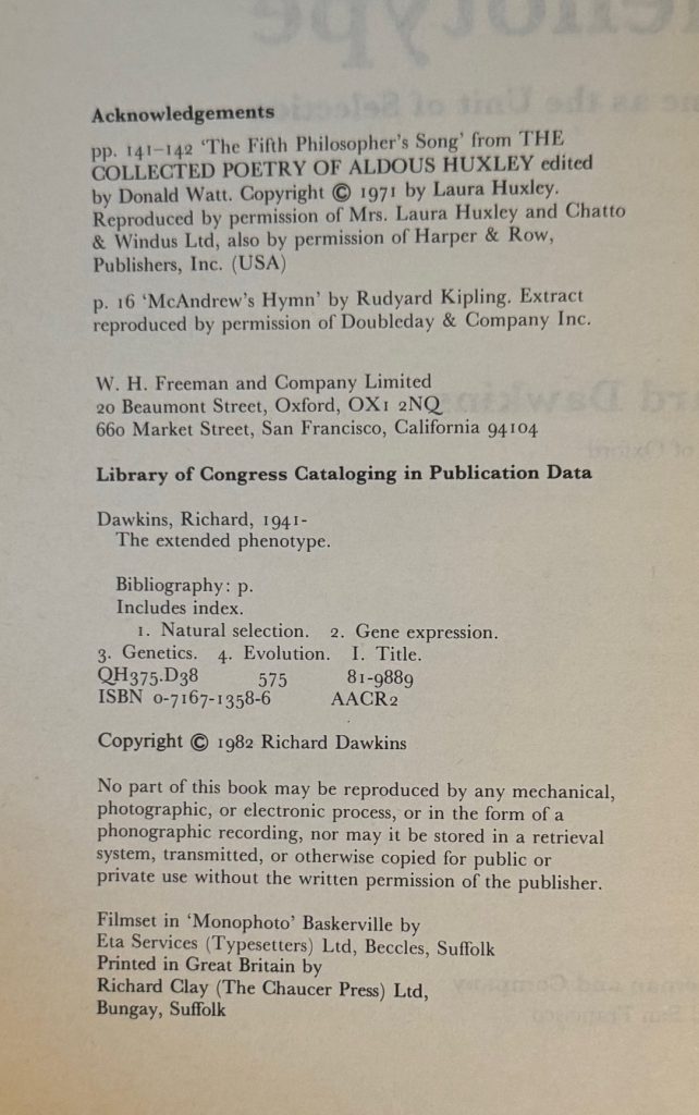 Dawkins, Richard ~ The Extended Phenotype : The Gene as the Unit of Selection