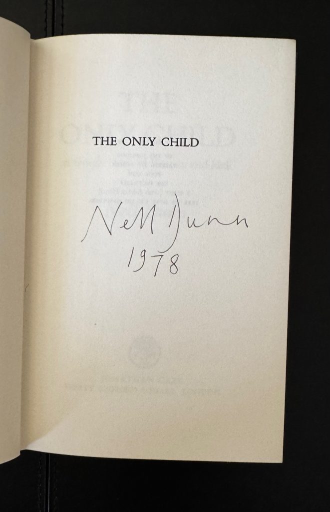 The First UK Printing published by Jonathan Cape, London in 1978. 8vo., dark blue boards, lettered in gilt to backstrip with publisher’s device to foot; upper edge top-stained blue; pale yellow endpapers; in the original unclipped pictorial wrapper (£3.95 net) featuring an illustration by Ron Bowen; The BOOK is in near Fine condition with just a couple of very faint spots and marks; the near-Fine WRAPPER just a little toned, with a couple of very light age-related markings. The wrapper is protected in a removable Brodart archival cover. Signed (without dedication) by the author and dated in the year of publication to the half title. Dunn’s writing was inspired greatly by her own lifestyle and experiences. Born in Chelsea to wealthy baronet Philip Dunn and Lady Mary Sybil, she led a life of privilege in her formative years and counted, amongst her friends and acquaintances, such figures as Cecil Beaton, Antony Blunt, Lucien Freud and Francis Bacon. In time, she began to write extensively on female relationships, motherhood, and the concept of money. Her first full-length novel Poor Cow (1967) caused a scandal when she wrote candidly about the nature of sex work and its relation to income. In The Only Child, she turns her attention to the upper classes, this time focusing on a rich protagonist, Esther Lafonte, and explores how the idea of money can be isolating from everyday life. The Only Child remains one of Dunn’s lesser-known works. Scarce signed.