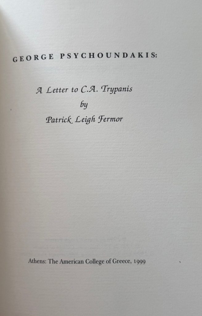 Fermor, Patrick Leigh ~ George Psychoundakis – A Letter To C.A. Trypanis : One of Ten Specially Bound Copies for Presentation by the Author : Signed by the Author
