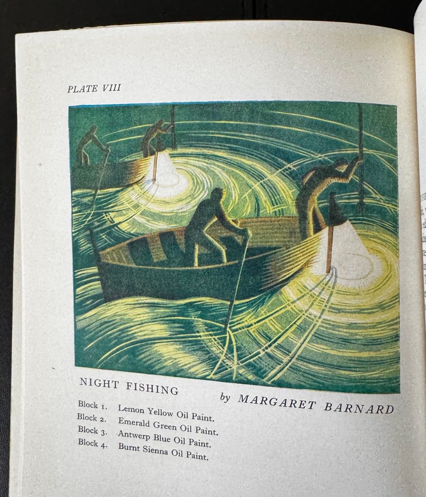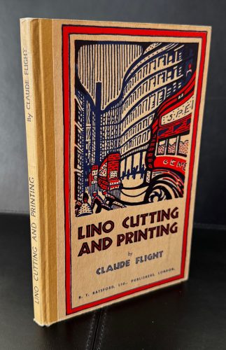 The First UK printing published by B. T. Batsford, Ltd., London in 1934. Tall 8vo., cloth-backed pictorial boards featuring a London street scene; lettered in black along the backstrip; with a frontis illustration by Eileen Mayo, and numerous other black and white and full-colour illustrations throughout on glossy paper; The BOOK a near Fine copy; a couple of faint marks to boards, a little rubbed at edges with the slightest hint of fraying to the spine ends; penned previous owner's name in red to the front free endpaper; a couple of minor marks to the paste-downs and endpapers. The book is protected in a removable Mylar cover. The book is dedicated to the Scottish artist Iain McNab, "whose encouragement of lino-cut colour printing made the first exhibition of work in this medium possible." The Scottish artist Iain Macnab was was the founder and principal of the Grosvenor School of Modern Art, at which the art of original linocut was first pioneered in the UK. Gathering around him a team of talented young artists and teachers, among them Claude Flight, Cyril Power and Sybil Andrews, the school taught according to his principles of rhythms, counter-rhythms, sweeping lines and carefully organised sequences of differing colours. It was Claude Flight that developed the art of lino cutting to its full potential while at the school, and who taught it most predominantly. There, he developed the art form to its full potential, and helped to develop the careers of several artists who were drawn to the the school, including Margaret Barnard, Leonard Beaumont, Dorrit Black and Diana Drew, some of whom are represented in the present title. Chapters are divided into the art, design, cutting, printing, and alterations of linocuts, with a final chapter on the rise and future of it as an art form. The introduction is provided by J. E. Barton. Elusive in this condition.