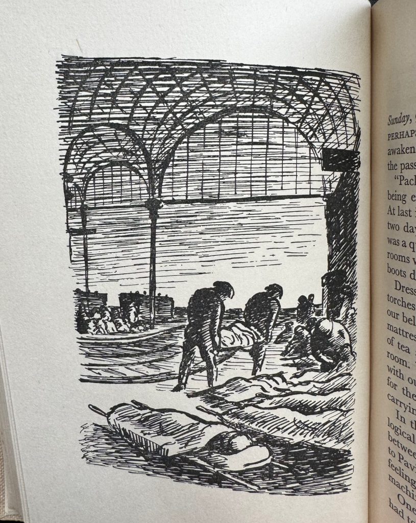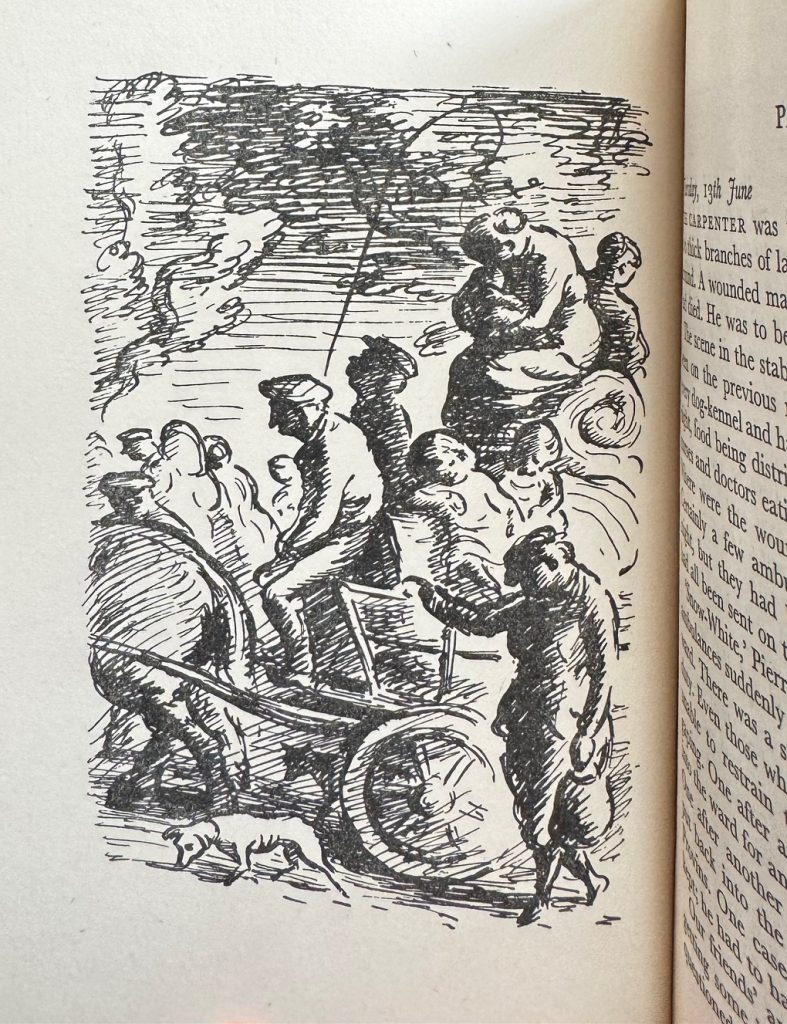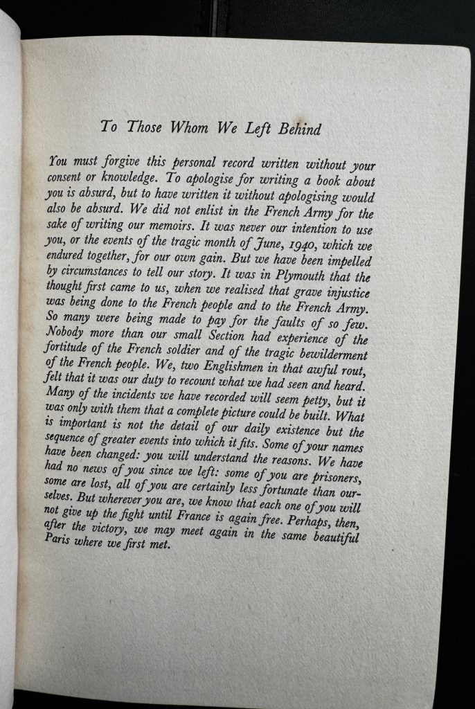 The First UK printing published by The Cresset Press, London in 1940. The BOOK is in near fine condition. A hint of pushing at the spine tips and a small bump to the lower rear corner. Top edge slightly dusty. Light offsetting to the map end-papers with a hint of spotting to the text-block. Free from inscriptions and erasures. The scarce WRAPPER is complete and is in Very Good++ condition with some mild edge-wear, nicks, creasing and small closed tears in places. A little loss at the spine ends and corners. A mild vertical crease to the spine with some age related markings in places. The Ardizzone wrapper artwork remains striking in the removable Brodart archival cover. Edward Ardizzone provides 6 full page B/W illustrations and the wrapper artwork. 'The book tells the story of two Englishmen who enlisted as ambulance drivers with the French Army on the eve of the crucial battle behind the Marne. It describes the conditions of life in Paris in the spring of 1940, and provides a fresh view of the crisis as it developed....' (wrapper blurb).A very elusive title to find with such attributes. Only the second copy that we have handled.