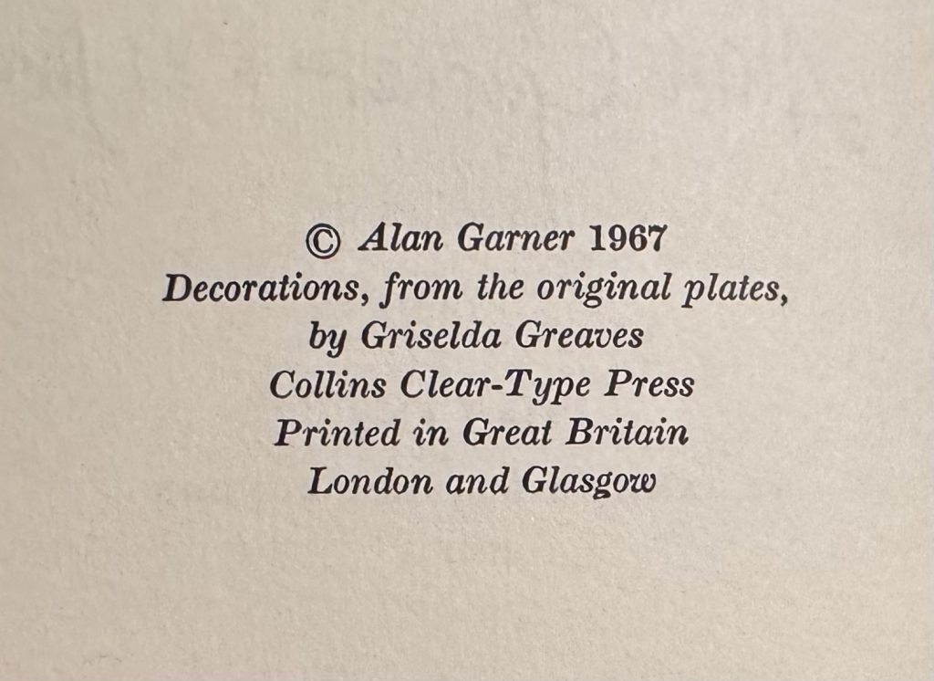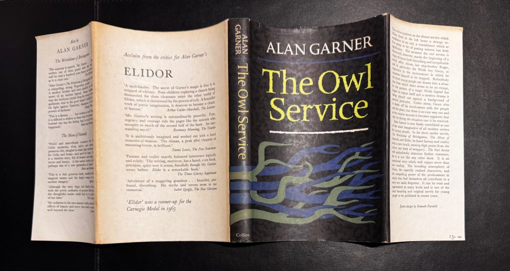 The First UK printing published by Collins, London in 1967. The BOOK is in near Fine condition with just a hint of pushing at the spine tips and some mild spotting to the text-block. The WRAPPER is complete and is in near Fine condition. Correctly priced at '15s. net' to the lower front flap. Light toning to the spine, folds and rear panel edges. A small nick with associated creasing to the upper front edge but barely discernible. The Kenneth Farnhill wrapper artwork is striking in the removable Brodart archival cover. The book has been signed (without dedication) and dated (21 June 1967) by the author in the year of publication in the author’s characteristic calligraphic handwriting. Garner's classic fantasy was awarded both the ‘Carnegie Medal’ and the ‘Guardian Prize’. ‘Only six books have won both awards in the 45 years from 1966 to 2011. Set in modern Wales, it is an adaptation of the story of the mythical Welsh woman Blodeuwedd, an ‘expression of the myth’ in the author's words. It was named one of the top ten Medal-winning works for the 70th anniversary celebration in 2007, selected by a panel to compose the ballot for a public election of the all-time favourite’ (Wiki). Signed titles by this author are very scarce.
