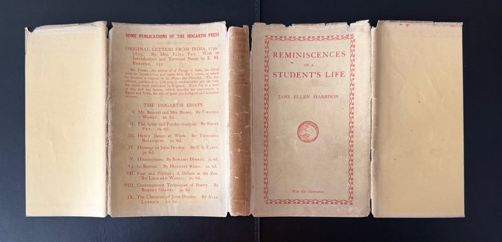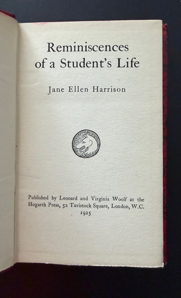 The First UK printing published by Leonard and Virginia Woolf at the Hogarth Press, London in 1925. The BOOK is in exceptional near fine condition. Original red cloth, marbled in black, printed paper label on spine, top-stain red, with the scarce wrapper. The wrapper is in Very Good+ condition. It has a few chips and some short tears to the edges and folds. Lightly rubbed, the spine darkened and toned with small losses to the spine ends but not affecting any titling. Some small tape repairs to the verso. The wrapper is protected in a removable Brodart archival cover. The autobiography of linguist and classical scholar Jane Harrison, "the first woman in England to become an academic, in the fully professional sense-an ambitious, full-time, salaried, university researcher and lecturer" (Mary Beard). Her groundbreaking work helped shape a generation of modernists, including Virginia Woolf, who was particularly influenced to write ‘A Room of One's Own’ by some of Harrison's work. In ‘Square Haunting', Francesca Wade notes, "After leaving university, the academic posts she applied for, went first to her male peers, then to the male students of her male peers; it was not until she returned to Newnham College, at the age of almost fifty, that she found an all-female community which gave her the validation, time and money she needed to produce the works which made her name-and which paved the way for female writers and public thinkers, such as Woolf, Power, Sayers, and H.D." Extremely elusive to find with the wrapper in any collectible condition. (Woolmer 64 : Francesca Wade, Square Haunting, 2020. p. 11)