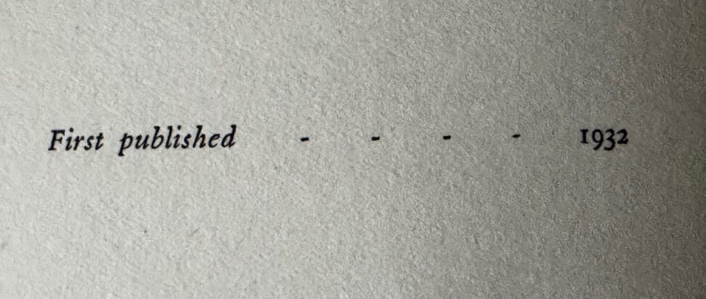 First UK Printing : Thornton Butterworth Limited, London : 1932