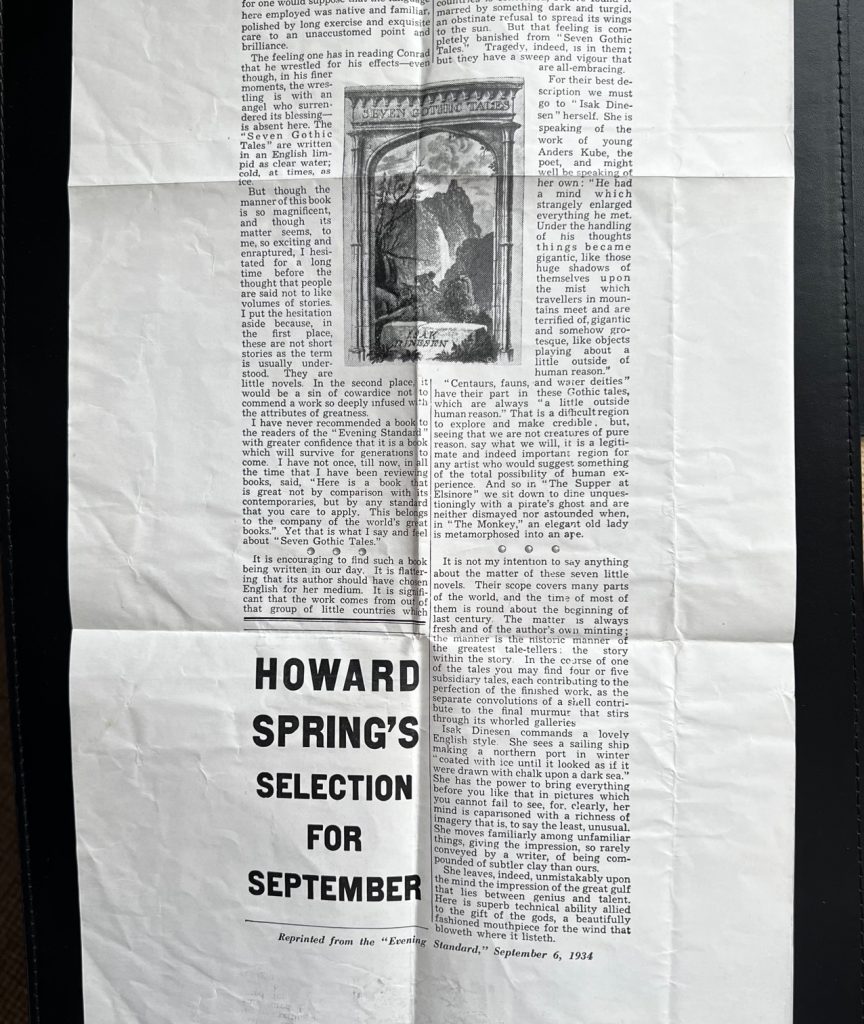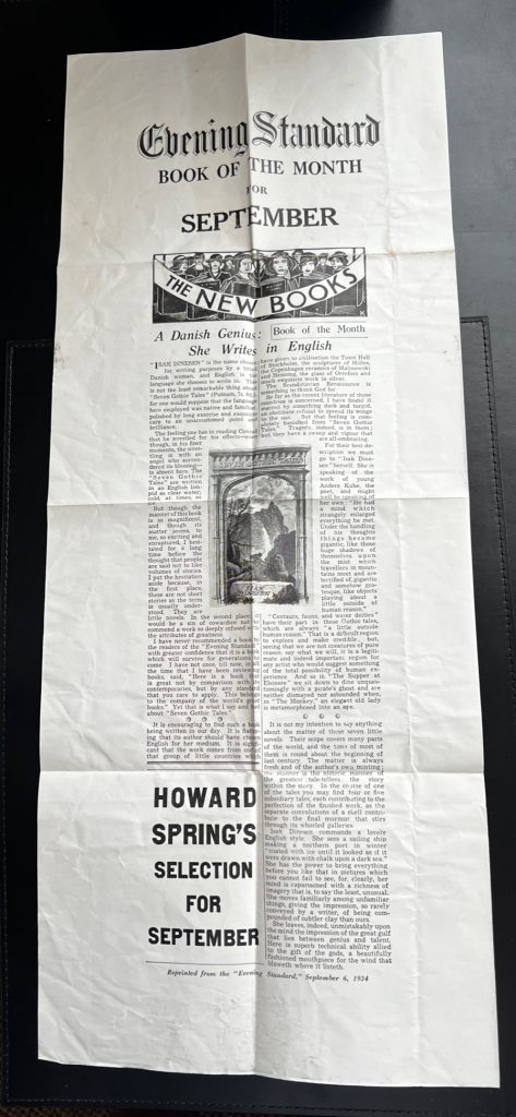 Isak Dinesen / Karen Blixen ~ Seven Gothic Tales : With The Scarce ‘Evening Standard Book Of The Month’ Wraparound Band And Promotional Flyer