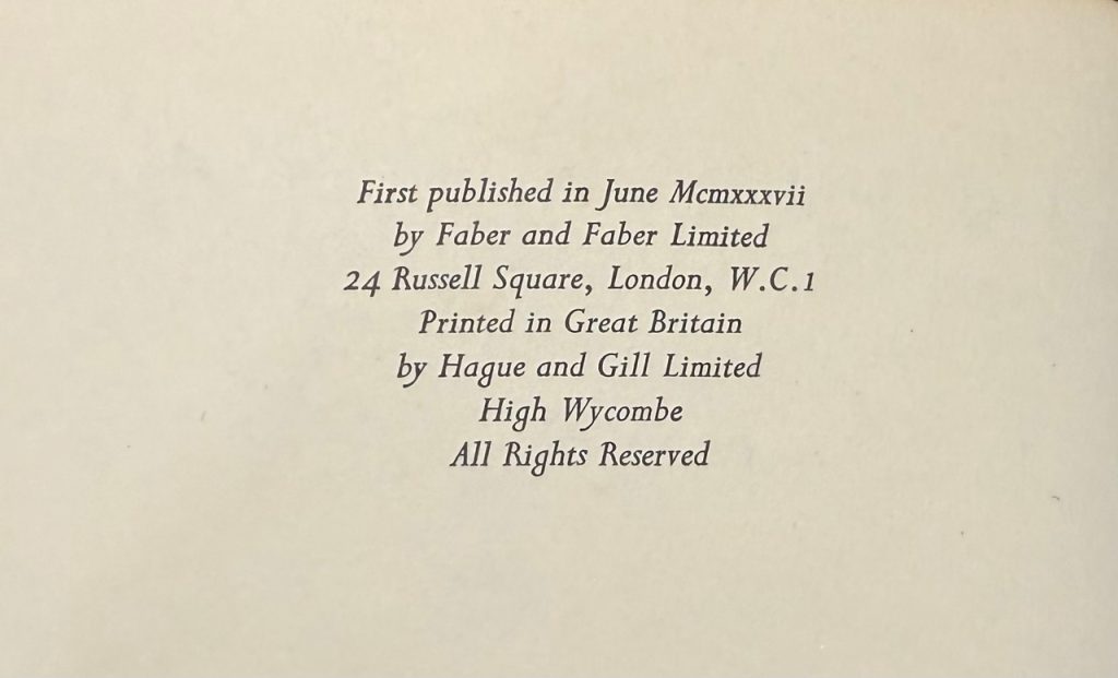Faber & Faber Ltd., London : 1937