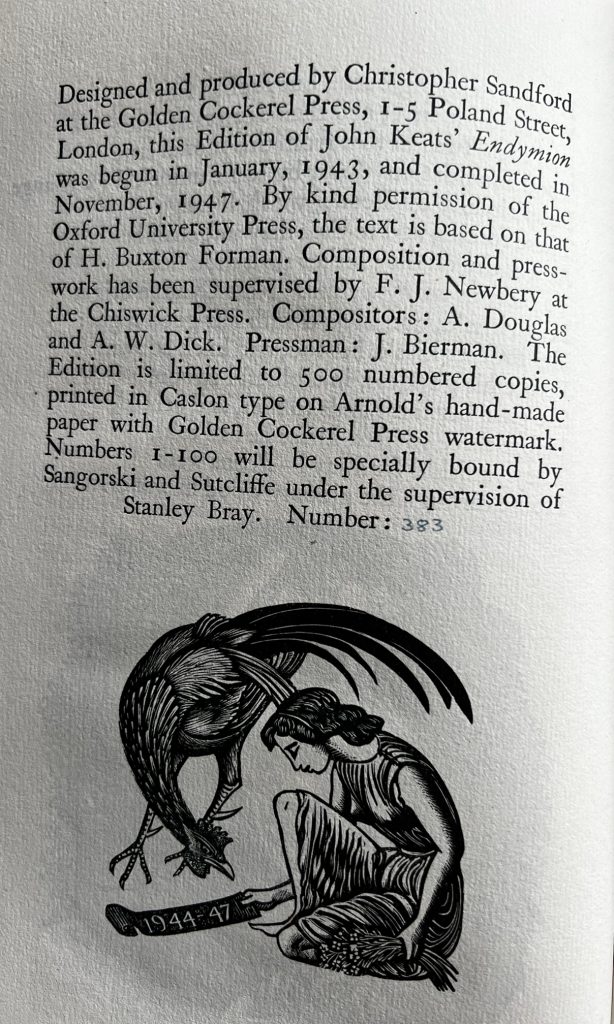 Keats, John & Buckland-Wright, John (Illus.) ~ Endymion. A Poetic Romance by John Keats, with Engravings by John Buckland-Wright