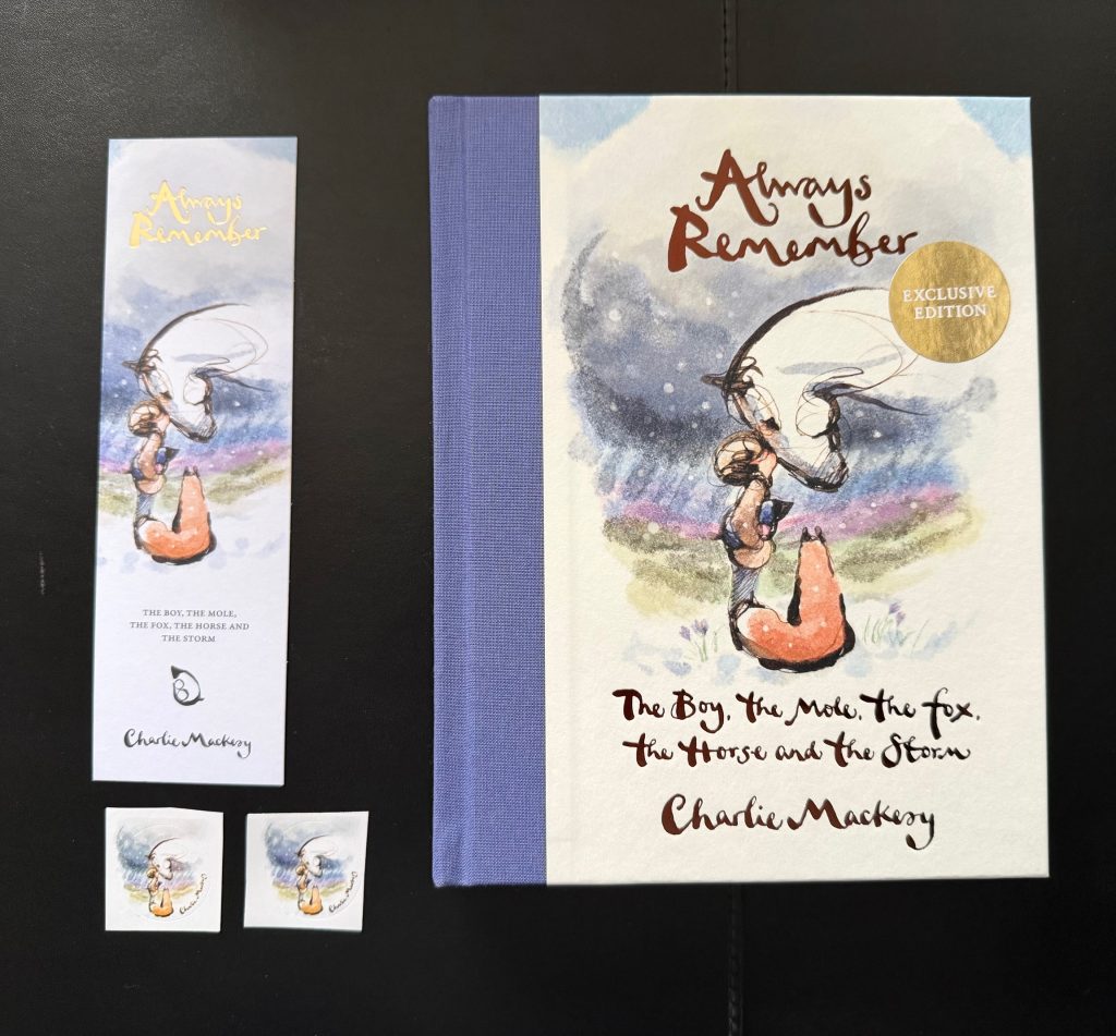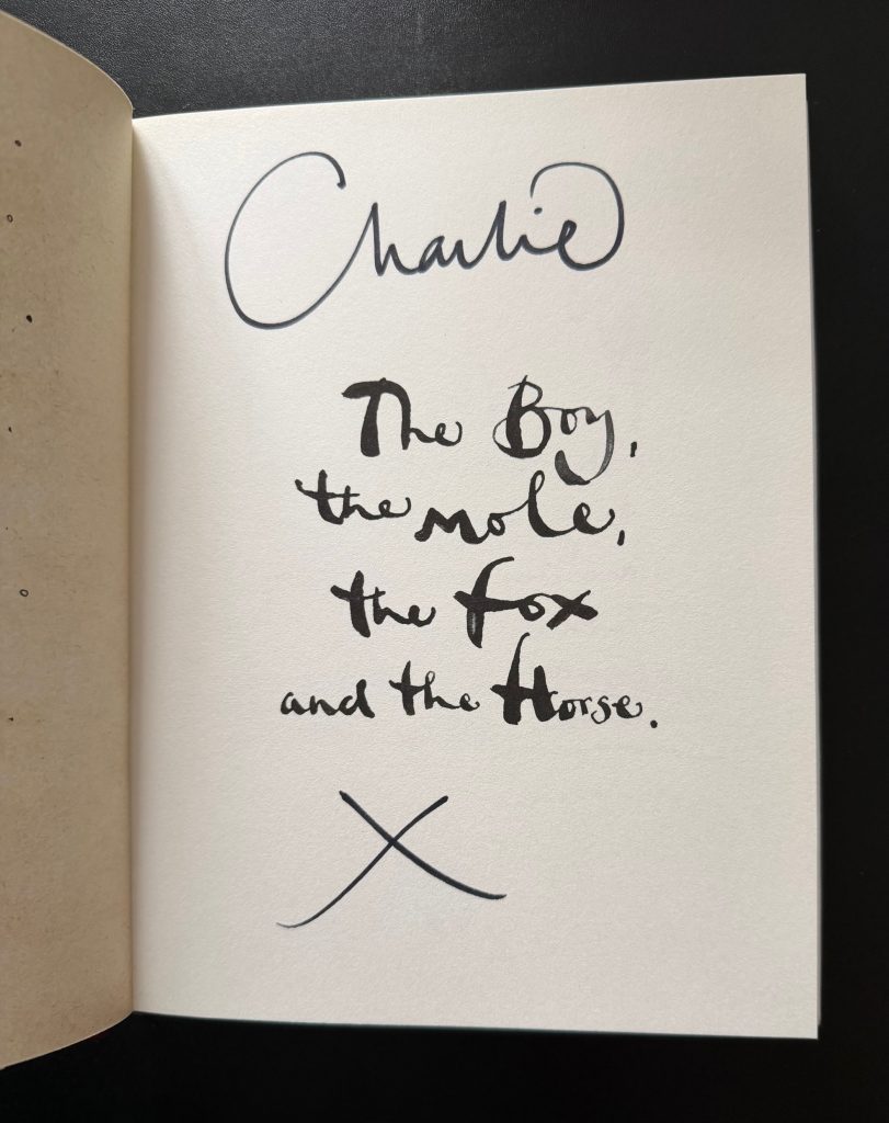 Three volumes set of 'The Boy, The Mole, The Fox and the Horse' : Vol.1) The First UK printing published by the Ebury Press, London in 2019. This is the 'Waterstones Limited' edition, which is the correct first issue with a complete number line 10-1. The trade edition was issued at a slightly later date. The BOOK is in Fine condition and appears unread. Original cream boards with gilt lettering to the maroon cloth spine. No toning to the boards. Internally clean. The book has been signed (without dedication) by the author to the title page 'Charlie, X'. The book was signed at the Waterstones, Piccadilly, London publication day book launch event in 2019 where the author was appearing. A copy of the ticket for the signing event accompanies this book as provenance. The 'Waterstones Limited' edition is the only edition to have the maroon special cloth binding, a gilt bookmark and an extra illustration. The book was issued without a wrapper and is protected in a removable Mylar archival cover. Striking illustrations throughout in colour and B/W by Charles Mackesy. A very sharp copy of the author / illustrator's best selling title, which was wonderfully animated for TV in Christmas 2022. Housed in a handsome custom solander box with gilt titling made by The Ludlow Bookbinders Ltd. Loosely laid in is the scarce illustrated bookmark for this title. Also accompanying this book is a complete set of five promotional illustrated postcards for this title, which have not been separated and are in fine condition. They are housed within the original printed paper folder. A very scarce ephemeral item - the first I have seen or handled. Vol.2) The First UK printing of 'The Boy, the Mole, the Fox and the Horse : The Animated Story' edition published by The Ebury Press, London in 2022. The Book is in near Fine condition in the original illustrated boards, with no wrapper as issued. Boldly signed by the author 'Charlie X' across the verso of the blank front end-paper and title page. Loosely laid in is the publisher's Bookmark and a copy of the signing event ticket for provenance. Vol.3) The sequel to the first book, 'Always Remember: The Boy, the Mole, the Fox, the Horse and the Storm' published by Ebury Press, London in 2025. This is the 'Waterstones Limited Exclusive' edition, which is the correct first issue with the number '1' to the printing details page. The trade edition (with a blue cloth binding, no Ex-libris page present, and a different page marker) was issued simultaneously. The BOOK is in Fine condition and is unread. Original illustrated cream boards with gilt lettering to the lilac cloth spine. No toning to the boards. Internally clean. The book has been signed (without dedication) by the author to the title page : 'Love Charlie, 9-10-25'. The book was signed at the Waterstones, Piccadilly, London publication day book launch event on the 9th October 2025, where the author was appearing. Only 100 tickets were available from Waterstones, Piccadilly for the signing event. This copy comes with a copy of the ticket for the signing event as provenance. Loosely laid in is the publisher's promotional Bookmark and some small unused illustrated stickers for this title. All three books are protected in removable Mylar archival covers. A very collectible set and scarce with such attributes. More images available on request.