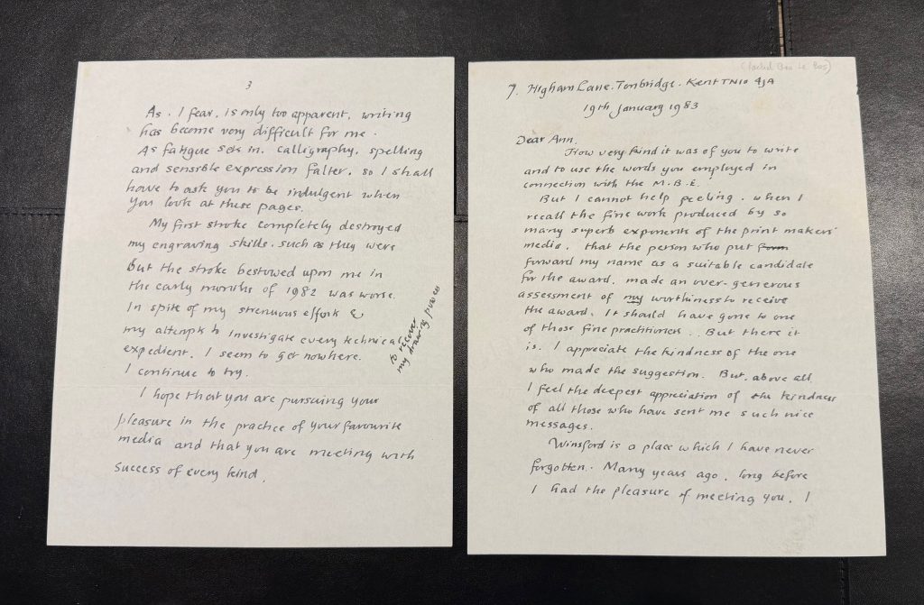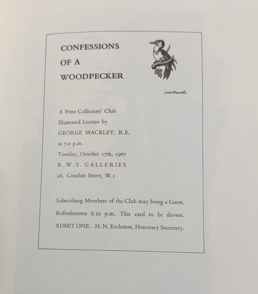 Mackley, George ~ 2 Vols.: ‘Confessions of a Woodpecker’ & ‘Wood Engraver’ – Limited Edition Signed by the Author and with a Long H/W Letter from the Author to Fellow Artist, Ann Le Bas