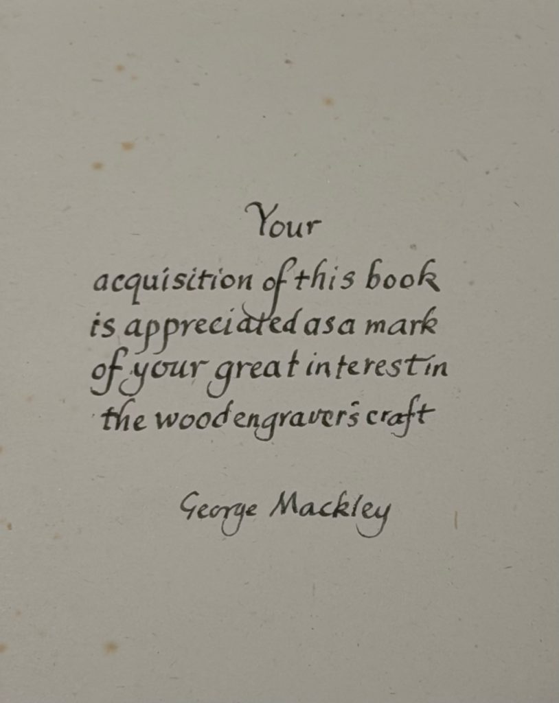 Mackley, George ~ Wood Engraving : Inscribed by the Author and with a H/W Letter Signed to a Fellow Artist