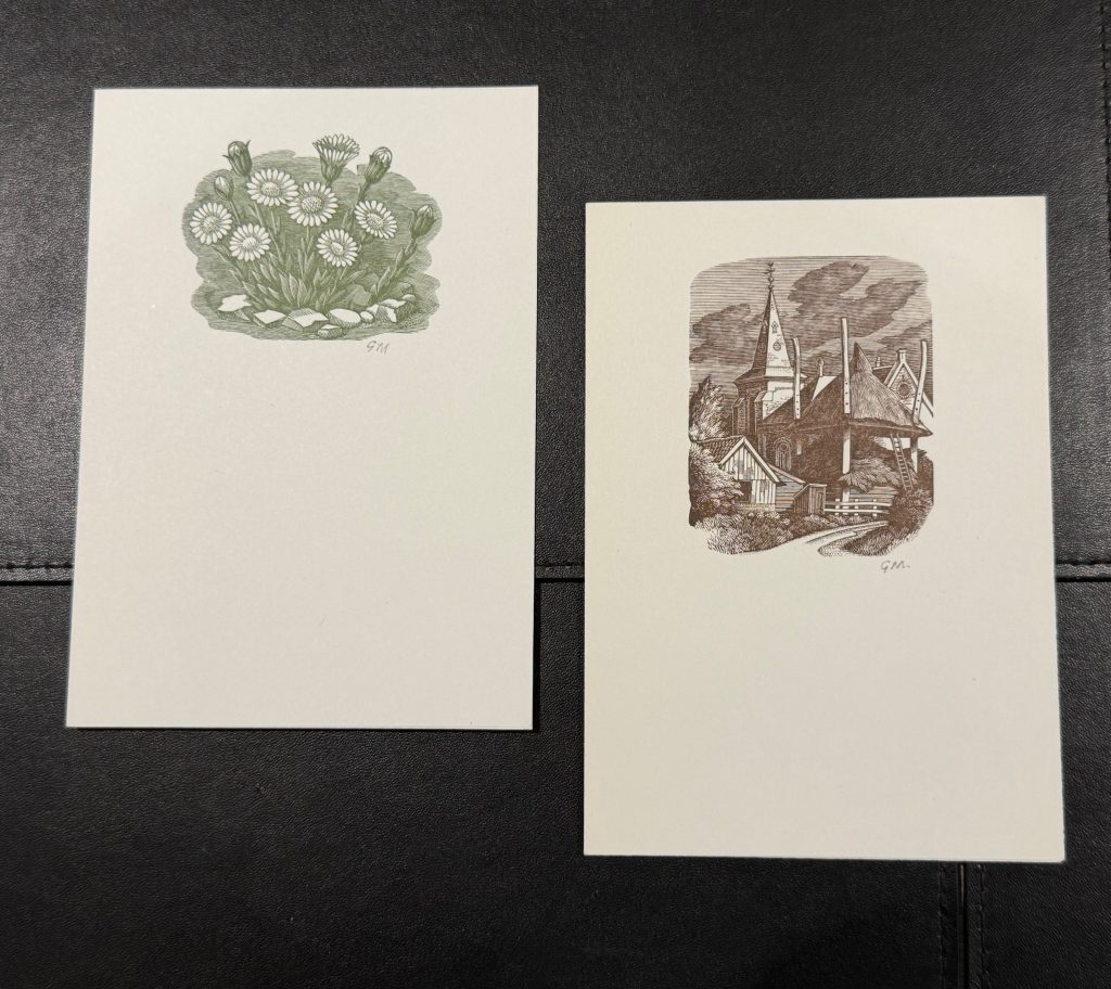 With two initialled wood-engraved cards and a signed letter to a fellow artist