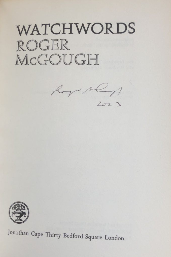 McGough, Roger ~ Watchwords : The Scarce Casebound Edition Signed By The Author