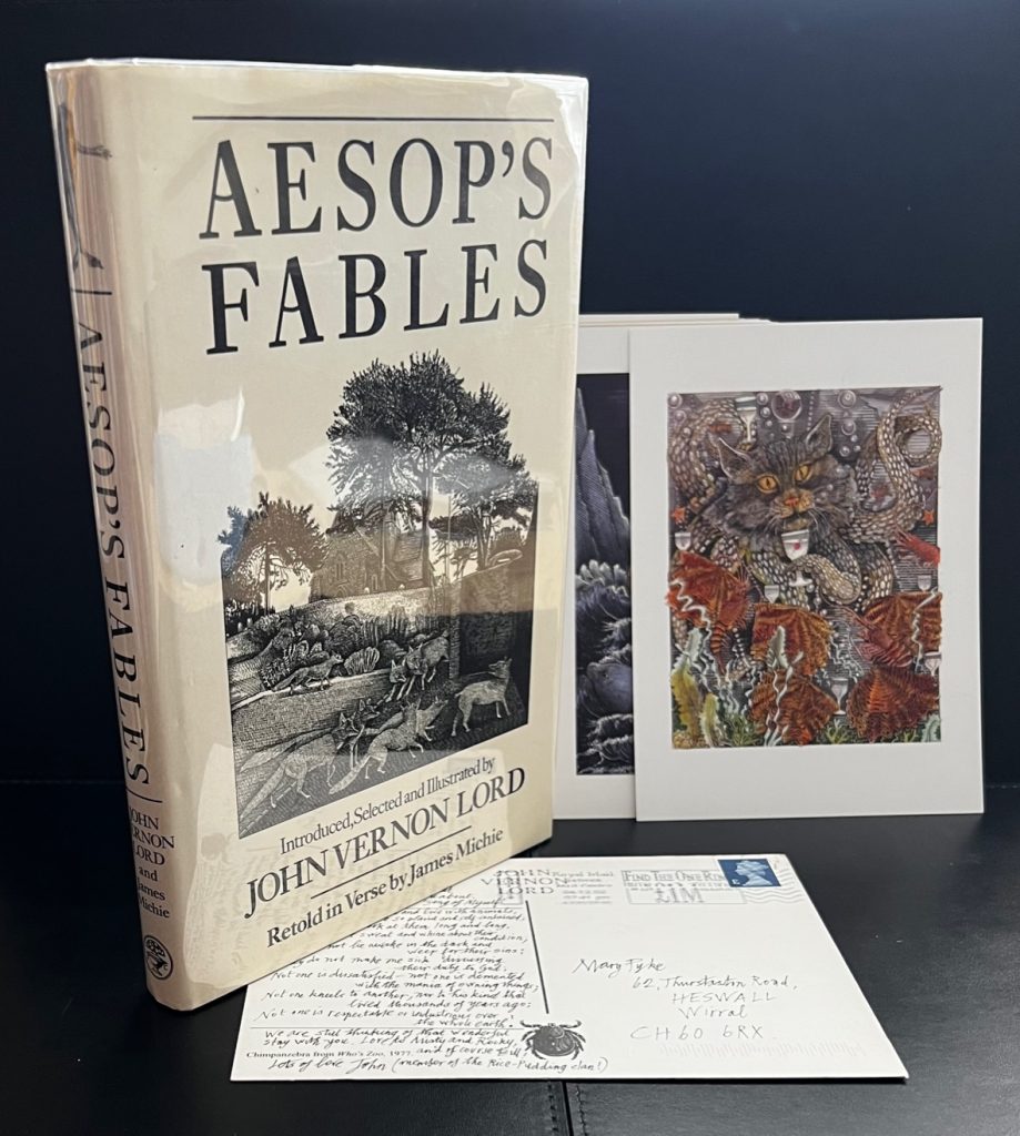 Michie, James & Vernon Lord, John (Illus.) ~ Aesop’s Fables : With A long H/W Inscription By The Illustrator : With A H/W Postcard From The Illustrator To The Same Recipients : With A Set Of The Illustrator’s Postcards