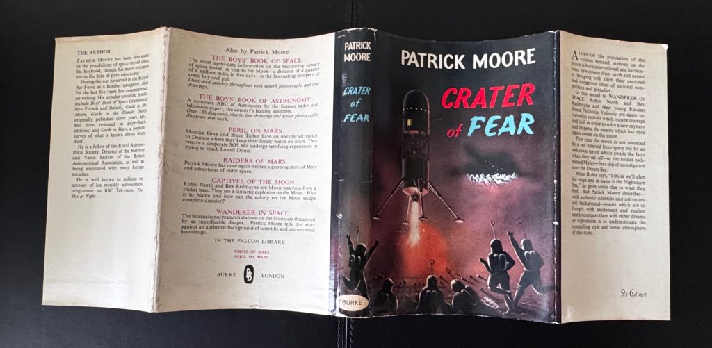 The First UK Printing published by Burke Publishing Co., Ltd,. London in 1962. 8vo., red publisher’s boards, lettered in black to backstrip with publisher’s device to foot; in the exceptionally bright pictorial wrapper designed by ‘Hardy’ (9s 6d net); The BOOK a near Fine copy, with the lightest pushing to the spine tips and lightly spotted to the text-block, but else clean and bright, in the clean and vibrant WRAPPER which has just a hint of toning, with minimal creasing along folds, and some very light rubbing to edges, more-so to the spine tips; tint small closed tear to the upper front spine fold. Extremely elusive in such fresh condition. The wrapper is protected in a removable Brodart archival cover. An exceptional copy of this science fiction work by the popular astronomer Patrick Moore, with the plot immediately following on from a previous work in the series, Wanderer in Space. In Wanderer in Space, Moore developed the story of the international research station based on the moon, being attacked by an unknown entity from space, heralding the wake of nuclear war on planet earth. In this sequel, the same two protagonists once again have to solve a new mystery by embarking on a mission - in a rocket named Mabel - over the ‘Dream Sea’. Based upon his own authentic scientific knowledge, Moore develops a story with events “so fraught with excitement and realism that to compare them with either dreams or nightmares is to underestimate the compelling style and tense atmosphere of this story”. (wrapper blurb). Along with his long and illustrious career in Astronomy, Moore was a lover of all things science fiction, and penned numerous children’s books on the subject during his lifetime. He passed away in 2012 at the age of 89, leaving a long-lasting legacy behind him.