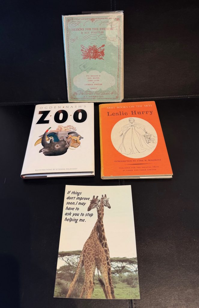 Stoppard, Tom (Related) ~ A Three Volume Set of Books from Carl Tom’s Estate : Nash, Ogden ~ Zoo [together with] Whistler, Rex ~ Designs for the Theatre [and] Hurry, Leslie [Lillian Browse, (Ed.)] ~ Leslie Hurry. Settings & Costumes for Sadler’s Wells Ballets : Two Volumes And Ephemera Signed by Tom Stoppard