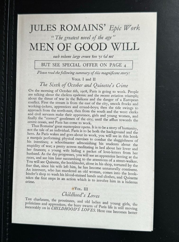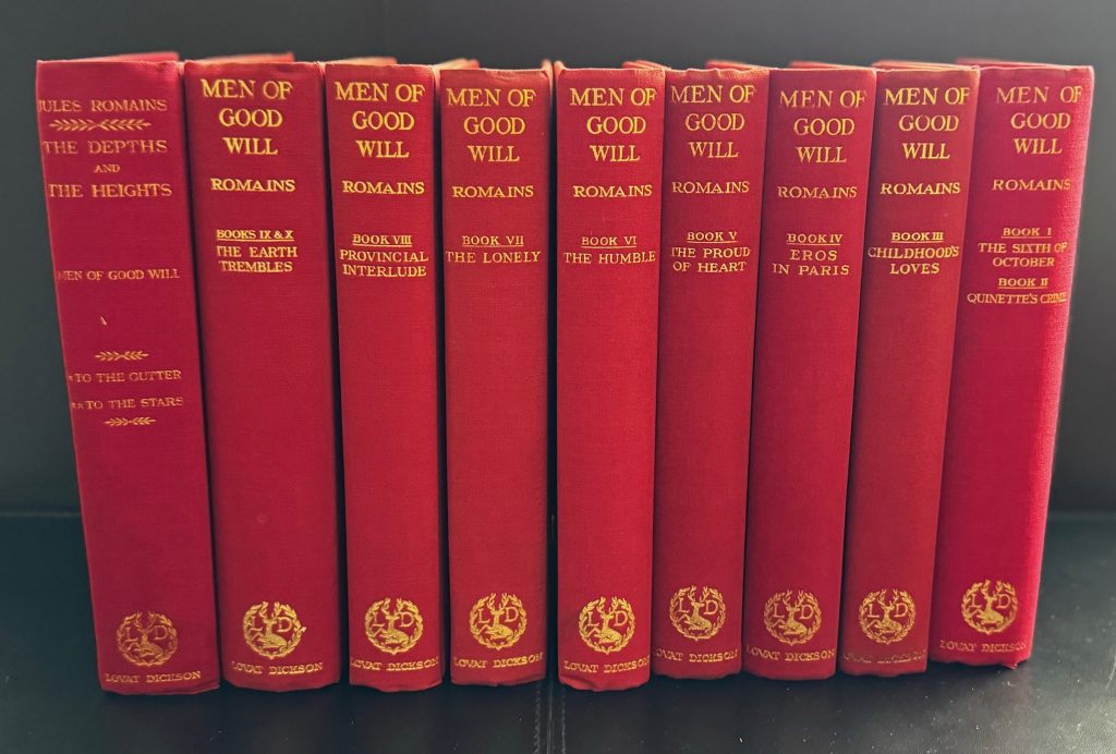 Romains, Jules ~ The ‘Men Of Good Will’ Series : Twelve Books In 9 Volumes – All With Their Scarce Wrappers Designed by Rex Whistler