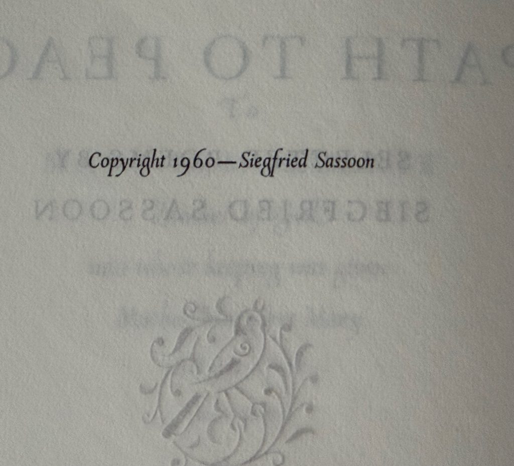 Sassoon, Siegfried ~ The Path to Peace : Inscribed by Siegfried Sassoon