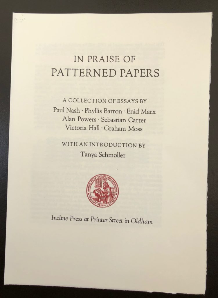 Schmoller, Tanya (Introduction) ~ In Praise Of Patterned Papers : Special Edition With Six Full Sheets Of Patterned Papers In A Portfolio : With The Publisher’s Prospectus