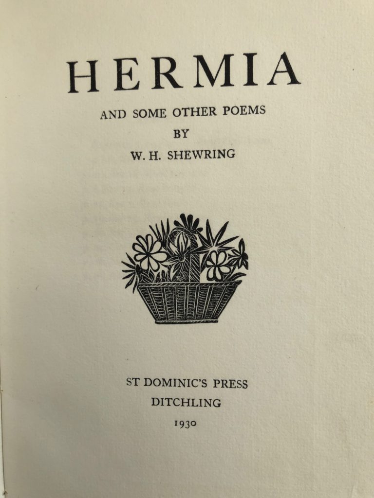 Shewring, W.H. ~ Hermia And Some Other Poems : Number ‘1’ Of Only 240 Copies Printed : With The Full Page Wood-Engraving ‘The Bride’ By David Jones