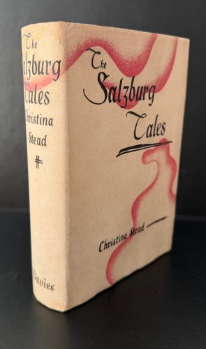The First UK printing published by Peter Davies, London in 1934. The BOOK is in Very Good++ condition. 8vo., pink cloth, lettered with decorative device in gilt to spine; in the publisher's unclipped wrapper ('7/6 net' to the front flap); lightly sunned to the spine and some pushing to the spine tips; some small light splash marks to upper text-block ; a little toning and offsetting to the endpapers; some sporadic spotting, mostly affecting the outer edge of text block and prelims; The WRAPPER is in Very Good++ condition, a little darkened and rubbed in places; small split along the front flap fold; some expert Japanese paper repairs and restoration to the folds, the losses at the spine ends, and to one closed tear at the rear panel (see images); an excellent survivor nonetheless. The wrapper remains striking in a removable Brodart archival cover. The debut book by Christina Stead, a highly-respected Australian author and committed Marxist who spent most of her adult life outside of her native country. Born in 1902, she left Australia in 1928, settling in London with the American broker, novelist and Marxist political economist William James Blech. Stead had committed to a career as a writer in 1925, while still in Australia, and 'The Salzburg Tales' appeared a few years later. Described by Bleiler in 'The Guide to Supernatural Fiction' as 'A septameron of interlocking narratives set against the backdrop of the famous music festival', the work is divided into seven separate days, with much of the supernatural material 'drawn from literary sources and classical legend, akin to Garnett's 'The Twilight of the Gods (1888) in subject matter and ironic tone.' Also compared to the Decameron, as well as De Quincey and Poe, the core involves a number of characters telling a series of interwoven 'strange tales, which for richness of imagination and vocabulary, for originality of manner and conception, have no parallel in modern fiction' (wrapper blurb). The book was the first in a line of twelve novels and numerous short stories which Stead would publish in her lifetime, with 'Seven Poor Men of Sydney' appearing in the same year as the present title. In 1979, the 'Christina Stead Prize for Fiction' was created in her honour, and is still gifted today to writers of fiction - either novels or collections of short stories. A very elusive title to find with the wrapper in any condition.