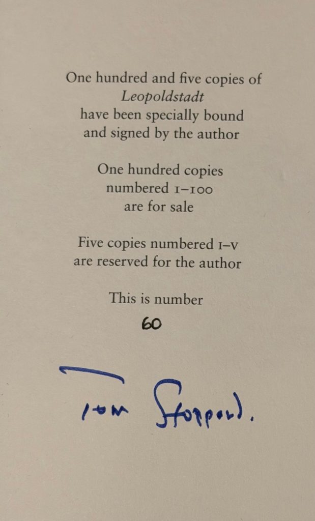 Stoppard, Tom ~ Leopoldstadt : The Slipcased Limited Edition Signed By The Author