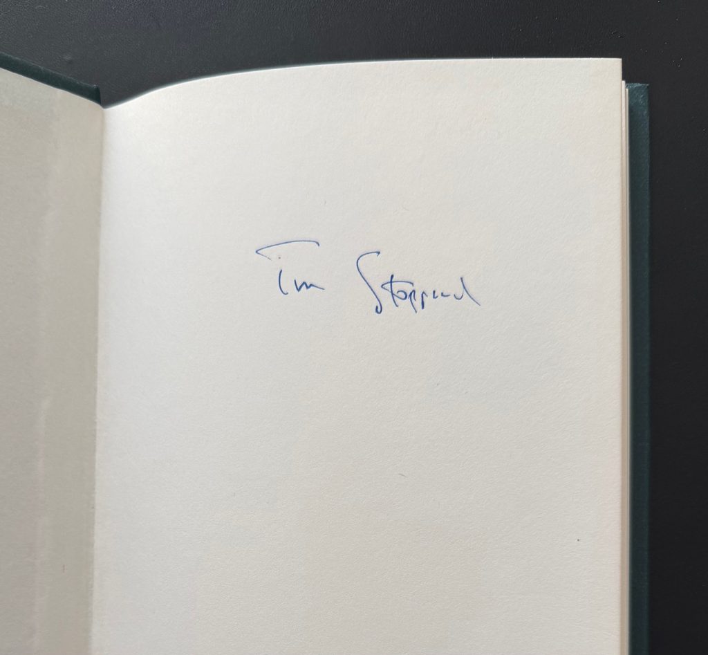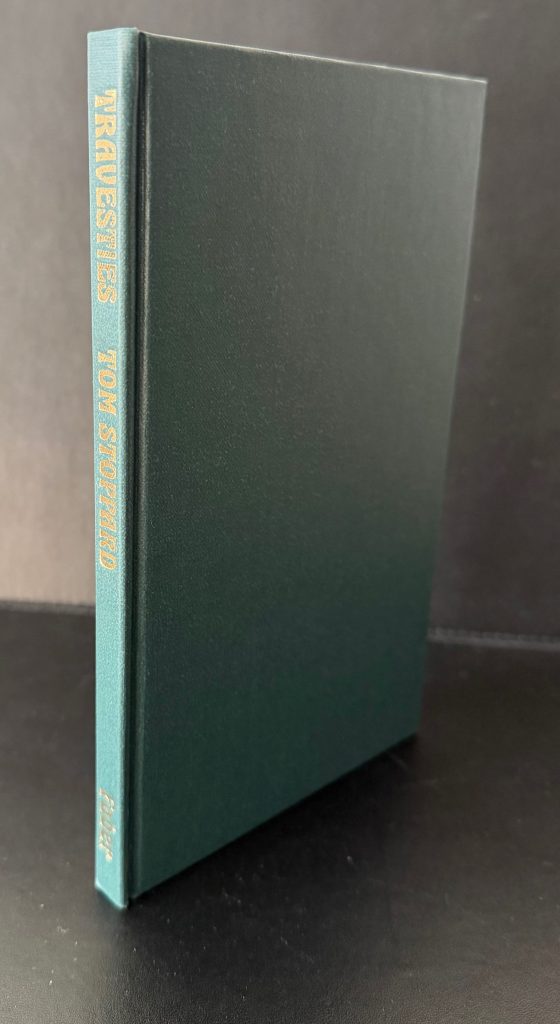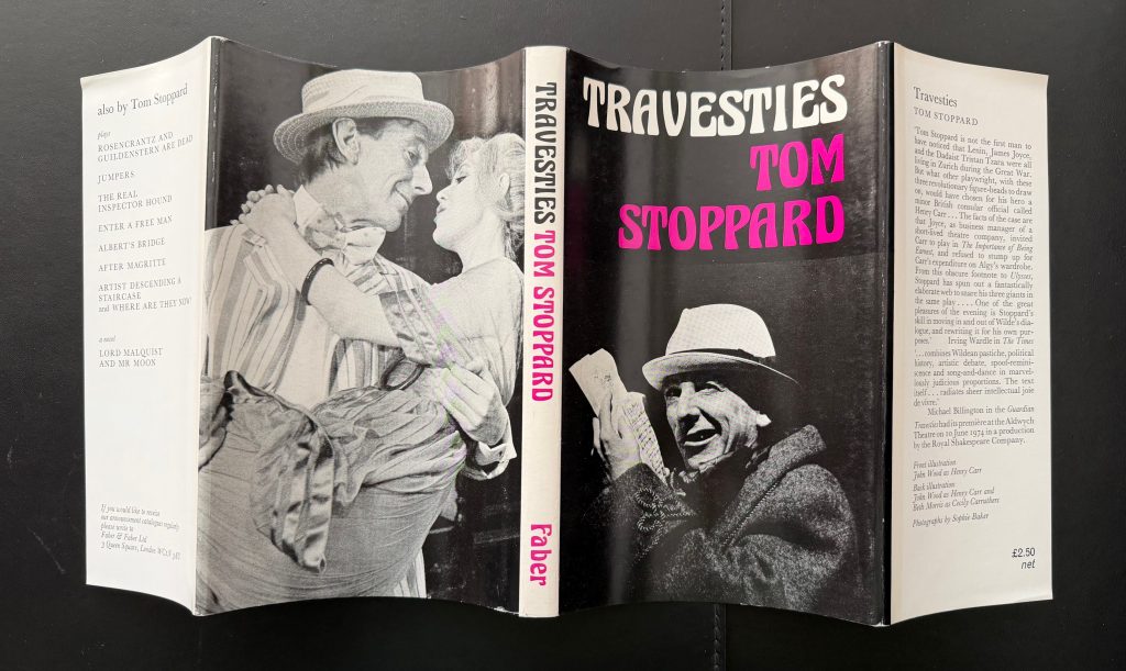 The First UK printing published by Faber and Faber, London in 1975. 8vo., dark green publisher's cloth, lettered in gilt to spine; together in the unclipped photographic wrapper ('£2.50 net' to the front flap) showing black and white images of John Wood as Henry Carr and Beth Morris as Cecily Carruthers, taken by Sophie Baker; The BOOK essentially is in near Fine condition ; The WRAPPER similarly so, with just barely-perceptible shelf wear. The wrapper is protected in a removable Brodart archival cover. Signed by the author (without dedication) in blue ink to the front free blank endpaper. This copy formerly in the personal library of Kennth Ewing, though with no ownership markings. Stoppard's thirteenth play, which debuted at the Aldwych Theatre, London, on 10 June 1974, and was originally performed by the Royal Shakespeare Company. Drawing together the three central figures of Lenin, Joyce and Tristan Tzara, who were all living in Zurich during the Great War, Stoppard's plot focuses on Henry Carr, a British consular official who is asked to perform in Joyce's performance of 'The Importance of Being Ernest'. The play is based on real-life events, with Carr being a true consular official living at the time in Switzerland, and Wilde's play being staged by Joyce's short-lived theatre company, The English Players. The production led to an angry dispute between Carr and Joyce, which had ended in a legal battle in which the judge had ruled in favour of both disputants on different counts. In revenge, Joyce later portrayed Carr as a drunken, foul-mouthed soldier in his stage adaptation of Ulysses. Kenneth Ewing was a highly-influential literary agent who was responsible for nurturing the careers of a series of famous playwrights and novelists including John Osborne, Iris Murdoch and Tom Stoppard through his agency, Peters, Fraser and Dunlop. A wonderful example with an interesting literary association. (Warner A6 a).