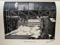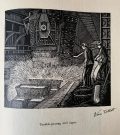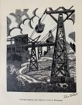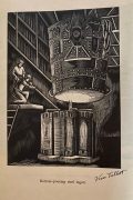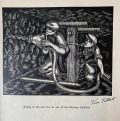 The sole UK printing by Hoods Fine Printers, Middlesborough in c1930s (nd). The Book is in Near Fine condition. A collection of 15 woodcuts (all signed by Viva Talbot in the plate) depicting various stages of the steel making process. Sewn limp printed card covers. Covers lightly spotted and lightly creased to the yapped edges. The book measures 26 x 39 cm. Internally the 15 striking B/W woodcuts are in fine condition. The woodcuts are titled (and have been signed in the plate) and each one has been printed on thick paper stock (blank to the verso). The 15 woodcuts detail the process of steelmaking from 'Digging Ironstone in Northamptonshire' to 'Rolling A Slab into a Plate'. An extremely scarce production with no copies located on JSIC and only one copy located on Worldcat. It is unclear as to how many copies were printed but it is likely that the print run was very small. Viva Talbot (1900-1983) was a talented artist who specialised in wood engraving. She knew many of the prominent wood engravers of the 1920s and 1930s, including Robert Gibbings, from whom she may have had some tuition. Her father, Benjamin Talbot (1864-1947), was the inventor of the Talbot Tilting Furnace which transformed the open hearth method of producing steel. He was involved in iron companies in Middlesbrough and Stockton and hence Viva, unusually for a woman of that era, had access to the steelworks. In 1941 she married Thomas Nussey and within a few years she became Lady Nussey when Thomas inherited a baronetcy from his father. Viva’s work remained largely undiscovered until 2006 when Dr Joan Heggie of the University of Teesside came across her steel making woodcuts in the British Steel Collection at the Teesside archives. These works and others by the artist became the subject of an exhibition at the Dorman Museum, Middlesbrough in 2010. A remarkable survivor.