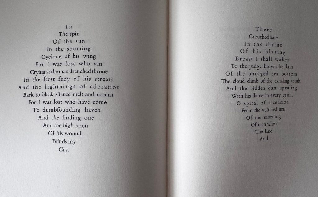 Limited Edition published by Gregynog Press, Newtown in 1983. Folio, bound under the direction of James Brockman in green morocco-backed patterned cloth boards, lettered vertically in gilt to backstrip; housed in the original publisher's cloth-covered slipcase; with frontis and a further 7 double-page illustrations in full colour by John Piper; The BOOK is in Fine condition and the slipcase is in equally nice condition with just a little rubbing in places. Limited edition, one of just 268 copies of which this copy 'No. 109' bound under the direction of James Brockman. Designed by Eric Gee, with a notecard from the Press and a letter from Eric Gee to a Mr Brickman, on Gregynog headed notepaper, in which he apologises for not being able to provide one of the specially lettered editions, which "were sold within seven days of our announcement of publication". A fabulous edition, in fine condition, with the striking full and double page illustrations by the war artist John Piper. Deaths and Entrances was Thomas's fourth volume of poetry, first published in 1946, which takes its title from John Donne's last sermon 'Death's Duell': "Deliverance from that death" Donne writes, "is an entrance, a delivery over to another death." The collection's title poem, written during September 1940, was like many others inspired by the young poet's experiences of the Second World War, and sits alongside others including the famous 'The Hunchback in the Park', 'Poem in October' and 'Fern Hill'. Together, they reflect his own profound experiences, perhaps most strikingly the bombing raids on London, which he experienced during his time as a fire-watcher in the burning city. Walford Davies, one of the leading authorities on Thomas, writes in his introduction that these poems are "amongst the most emotionally vivid and strongly-worded" of the war. "The poems are closer to the real spirit of the times" he continues, "the resilience and the defiance, than any more strictly analytical response would have allowed them to be. The refusal to mourn is a strategy." The book is here beautifully accompanied by eight illustrations in sweeping full colour by John Piper, whose depictions include the fire of the Blitz at the House of Commons in 1941, alongside scenes of Welsh landscapes, buildings and cities which were part of the poet's home, including Swansea, which Thomas himself referred to as my ‘ugly lovely town’. The Gregynog Press, founded in 1922 by the sisters Margaret and Gwendoline Davies, rose to prominence during its heyday as one of the best and most revered private presses of the 20th century. After eighteen years, forty-two books and hundreds of ephemeral items, it was forced to close in 1940, reopening under the Welsh name Gwasg Gregynog by the University of Wales in 1978. A beautiful production from the Press.