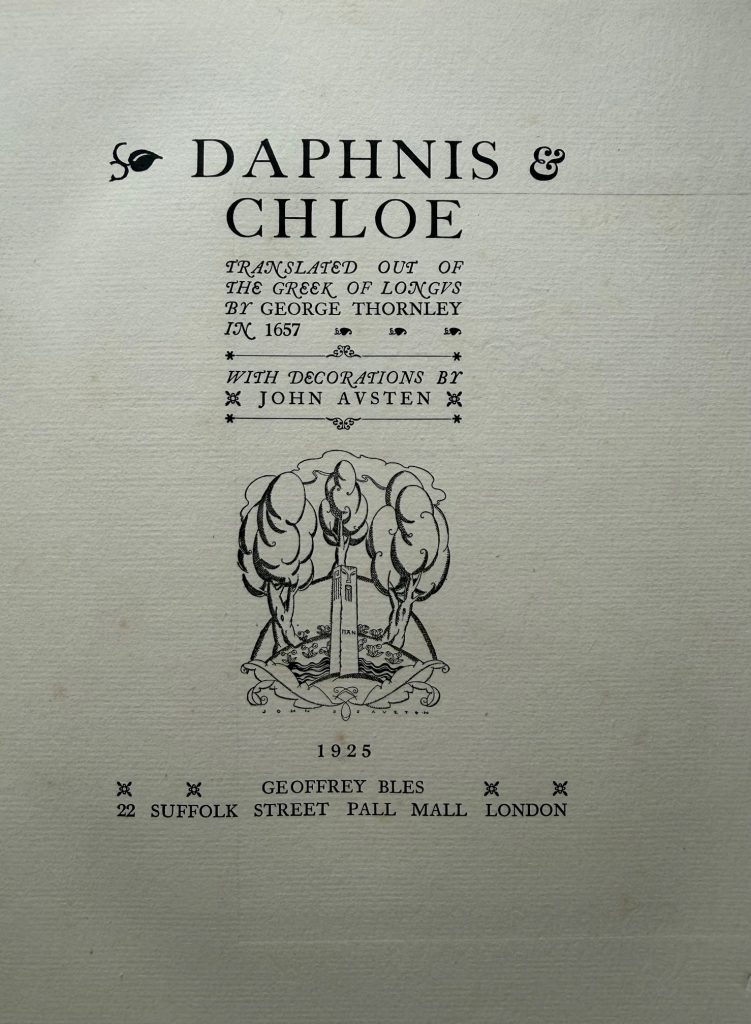 Thornley, George [Trans.] & Austen, John [Illus.] ~ Daphnis & Chloe : The Large Paper Edition of Only 100 Copies Signed By The Illustrator