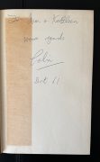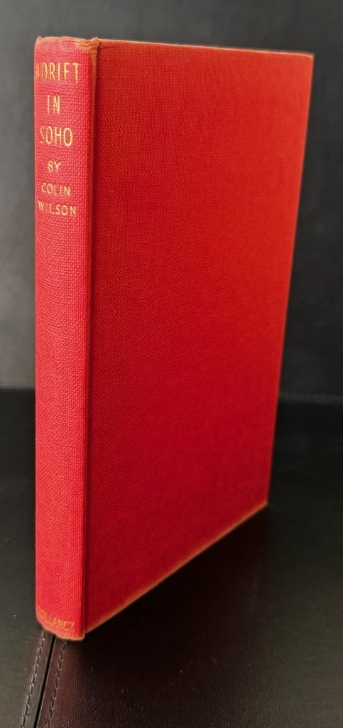 The First UK Printing published by Victor Gollancz Ltd, London in 1961. 8vo., red publisher's boards lettered in gilt to backstrip; together in the iconic Gollancz wrapper in bright yellow, lettered and bordered in pink and black (16/- net); The BOOK is in Very Good++ or better condition with mild offsetting to the end-papers; slight toning to the outer edges of text block, with a couple of small red marks to the lower edge; slightly sunning to the edges and spine tips; Light pushing to the spine ends. The WRAPPER is in Very Good++ or better condition. Some light age related markings more-so to the lower panel, which also has a couple of small light splash marks; ever-so-slightly nicked at head of spine and tips of folds. The wrapper is protected in a removable Brodart archival cover. Inscribed by the authorn to the front free endpaper, in the year of publication: "For Ivan + Kathleen, warm regards, Colin, Sept 61" Wilson's fifth book, and second novel, which follows a provincial lad (Harry Preston) in the mid 1950s, from his service with the RAF to Soho and Notting Hill. Seeking life and adventure in the capital, he becomes involved with the members of London's beatnik generation which include the real-life 'King of the Bohemians' Ironfoot Jack and a whole host of other characters which include artists, writers, actors, con men and rich benefactors. Many of these were based on real-life people living in London at the time of publication (Jack was Professor’ J. R. Neave, who wore a surgical boot with an iron extension below the sole) but at the advice of his publisher, Wilson went on to change all of the names substantially in order to avoid any potential legal battles. Wilson had himself been conscripted into the air force in 1949, but clashed with the authoritarian nature of his superiors, and in order to be dismissed he feigned homosexuality and spent the next few years travelling around Europe, taking up a series of menial jobs. During his time in London, he spent some time sleeping rough in order to save money, and first conceived of the idea for Adrift in Soho as a collaboration between himself and his friend Charles Russell, a bohemian and uncredited actor who had sent Wilson a copy of a novel he was writing. "As soon as I read it I saw that it was unpublishable in its present form", Wilson later wrote in his autobiography, "But the fragment fascinated me….For about a week I tried to rewrite it as a novel, then suddenly realised that I could not write the book from behind Charles’s eyes, so to speak; I had to put myself into it." Russell would receive £100 and a percentage of ongoing royalties for his part in the publication. As Nicolas Tredell would later write in 'The Novels of Colin Wilson' (1982): "Adrift in Soho, for all its lightness, manages to be many things. A Bildungsroman; a picaresque tale; a documentary; a period piece; a fairy story; an investigation of freedom...It also teaches a lesson relevant to Wilson’s future development as a novelist: that an apparently light-weight form could deal with serious themes." Rare in such collectible condition with such attributes.