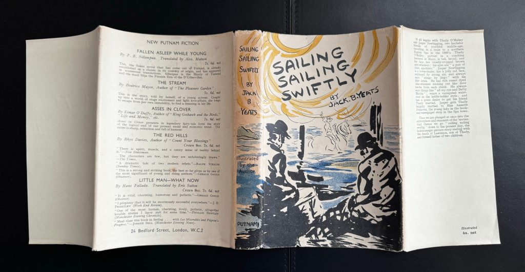 The sole UK printing published by Putnam, London in 1933. The BOOK is in Very Good++ or better condition. Original yellow cloth with gilt titling to the spine. Light pushing at the spine tips. Some toning and spotting to the text-block. Mild offsetting to the blank end-papers. Free from inscriptions. Mild to moderate spotting in places more-so to the prelims, due to the quality of the paper stock used. The scarce WRAPPER is complete and is in near Fine condition. Light edge-wear with very small losses at the corners. Small nicks and some light rubbing in places. Light toning to the spine. The wrapper artwork by the author looks striking in the removable Brodart archival cover. A novel with 32 B/W illustrations by the author and acclaimed artist, the brother of W.B. Yeats. Copies very rarely turn up in commerce with the wrapper.